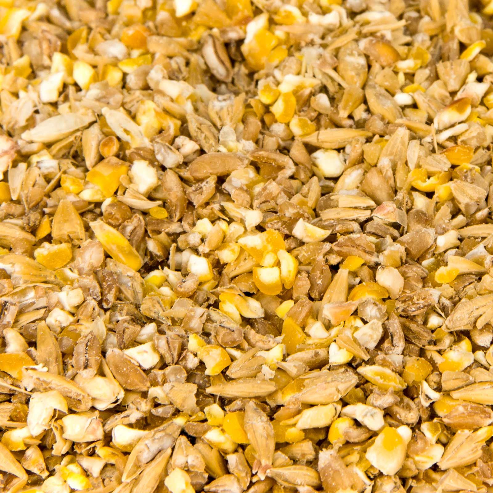 Korn grovt, vete grovt, majs grovt, musselgrus, kalciumkarbonat, solrosolja, monokalciumfosfat, natriumklorid