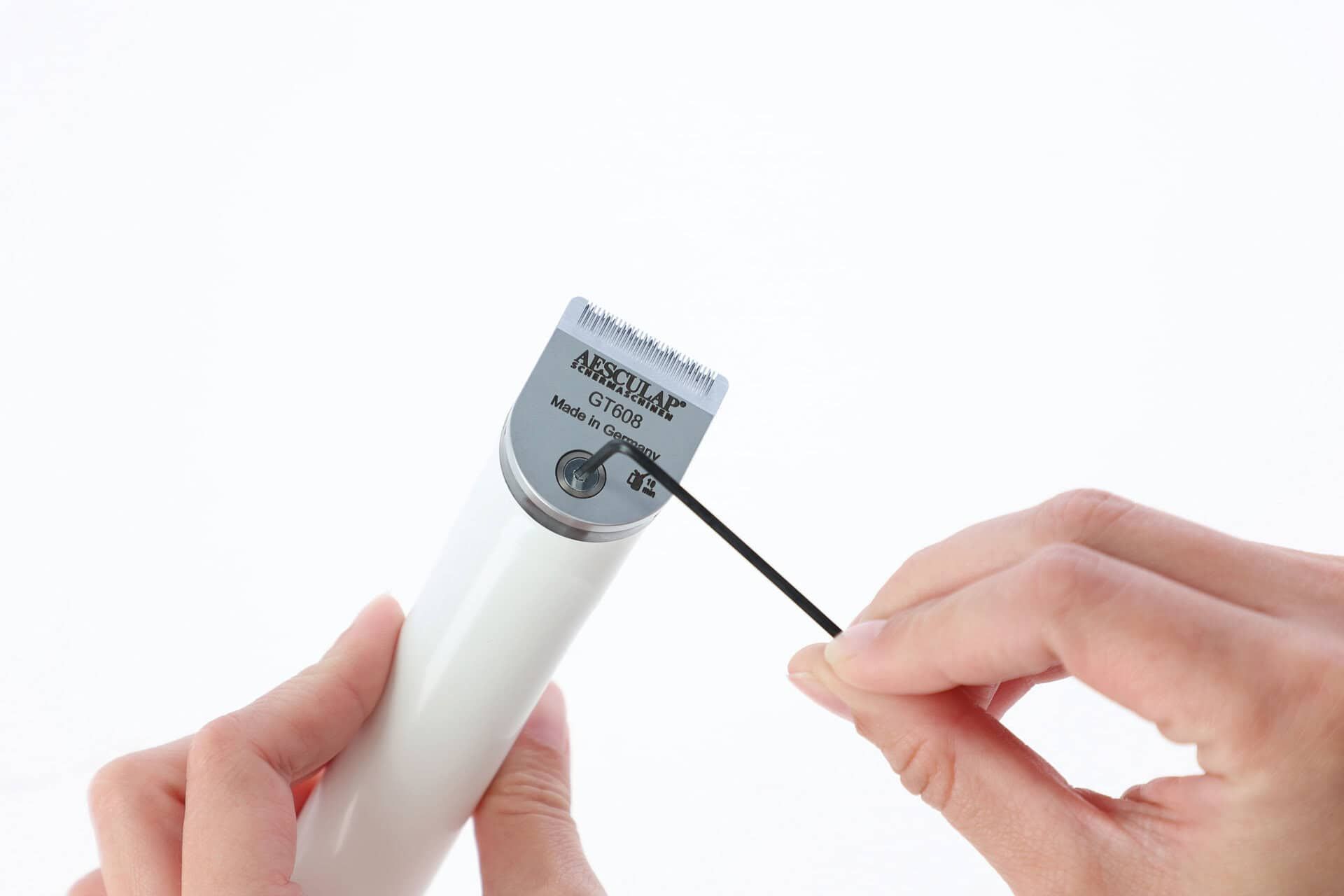 Aesculaps klipphuvud (GT608) passar till Aesculap Exacta (GT415) och Aesculap Isis (GT420) batteriklippare. Med en klippbredd på endast 24 mm och en klipplängd på 0,5 mm är det fin-tandade klipphuvudet idealiskt för att klippa konturer och fina arbeten. Tack vare det speciella Aesculap-kolstålet har klipphuvudet en betydligt högre klippkapacitet än konventionella skärsatser. Det goda hantverket i Aesculaps CNC-bearbetningscentra garanterar en jämn och hög kvalitet. Ersättningssatsen monteras helt enkelt på trimmern med en skruv och en insexnyckel.