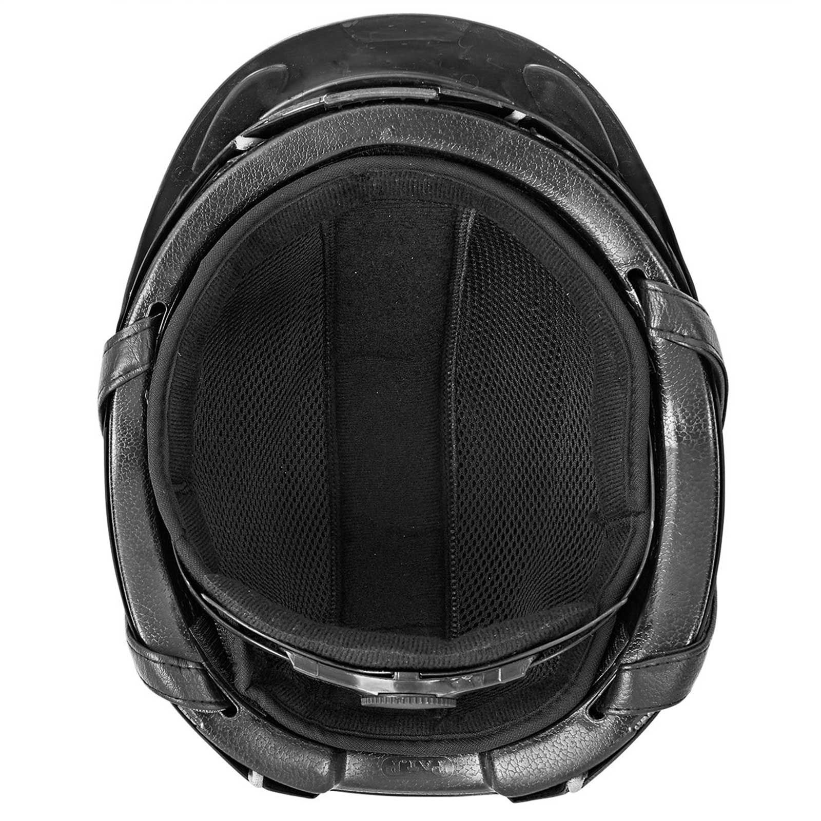 Den lätta ridhjälmen för män och kvinnor imponerar med sin aerodynamiska profil och anatomiska passform. Hjälmens yttre skal är tillverkat av ett motståndskraftigt och väderbeständigt ABS-material som samtidigt är lätt och särskilt stötdämpande. Den steglösa slutjusteringen av storlek och huvudform är möjlig med hjälp av inställningshjulet i nackområdet. Den optimala fixeringen av BUSSE ridhjälmen uppnås genom 4-punktsremmarna, som på sidorna är täckta med ett lättstädat konstläder. Den andningsbara, svettavlägsnande och snabbtorkande innervaddningen kan tas bort för enkel rengöring och kan tvättas i maskin vid 30 °C.