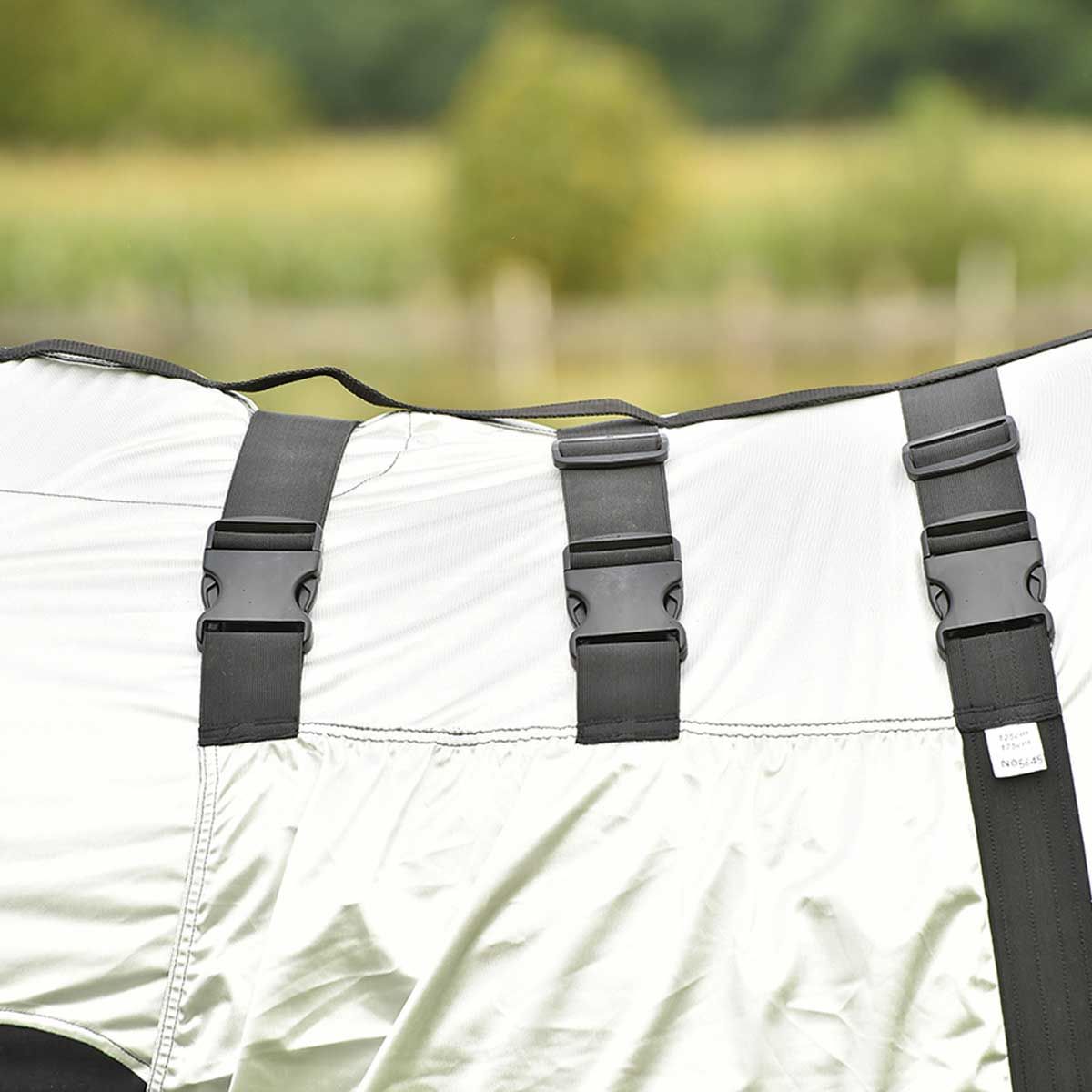 För den slutliga justeringen av ett hästtäcke bör justeringsmöjligheterna på produkten användas, eftersom felaktig applicering kan leda till skador. Även med optimal justering är regelbundna kontroller av passformen väsentliga. Kontrollera att filten sitter rätt, att kardborrebanden är rena (för att undvika skav) och att filten är intakt.