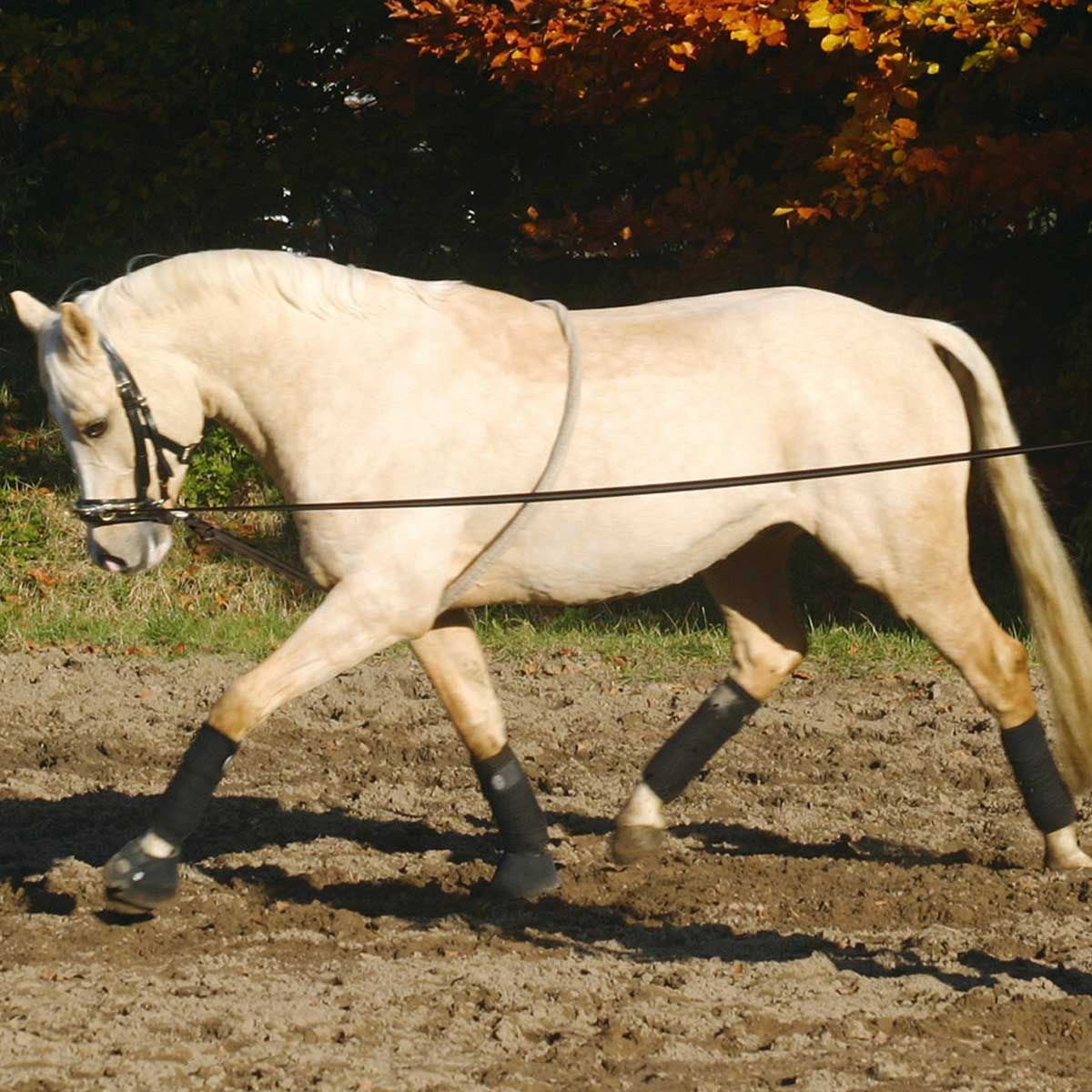 Viktigt: Beroende på gångart överförs hästens rörelse till bettringarna. För att uppnå önskad hållning får sladden inte vara för kort. Om inställningen är för lång eller om hästarna slår med frambenen när de rör sig finns det risk för sparkar. Var försiktig när du använder damasker, eftersom sladden kan fastna bakom dem.