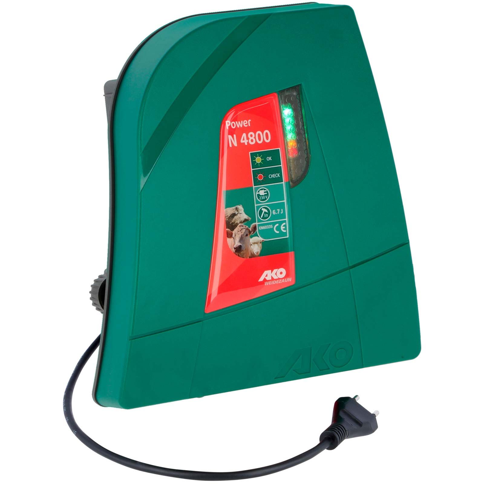 Den kraftfulla Power N 4800 är idealisk för hästar, nötkreatur, får, getter och viltförsvar. Den flerfärgade LED-indikatorn ger information om staketets tillstånd.
