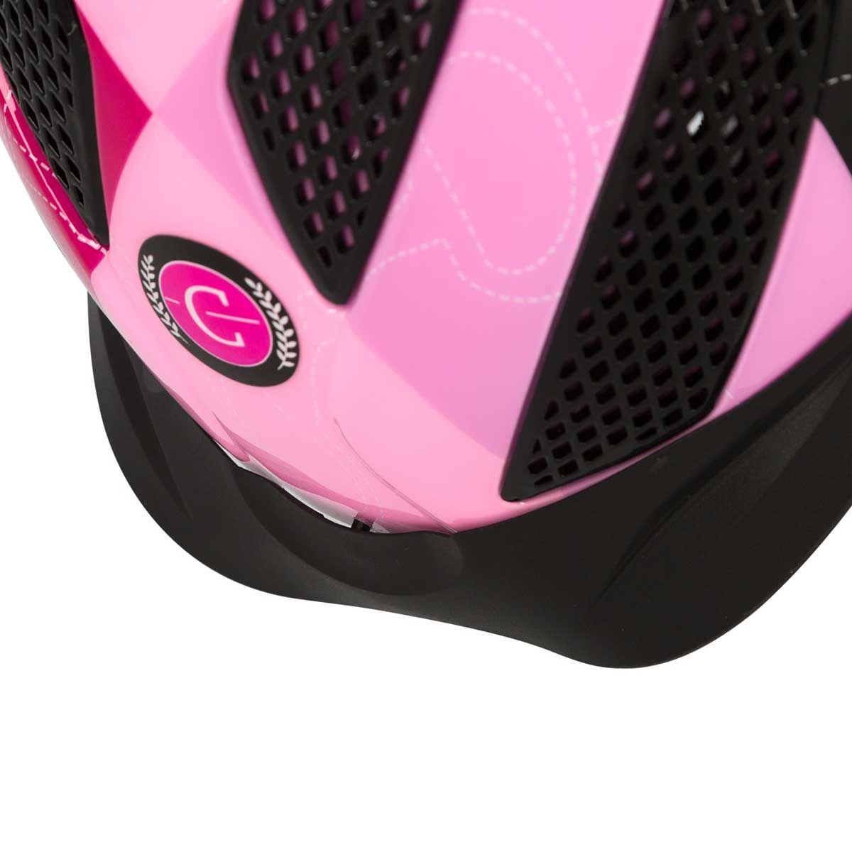 eXite ridhjälmen för den unga generationen med ett attraktivt rutmönster i de trendiga färgerna rosa och lila.