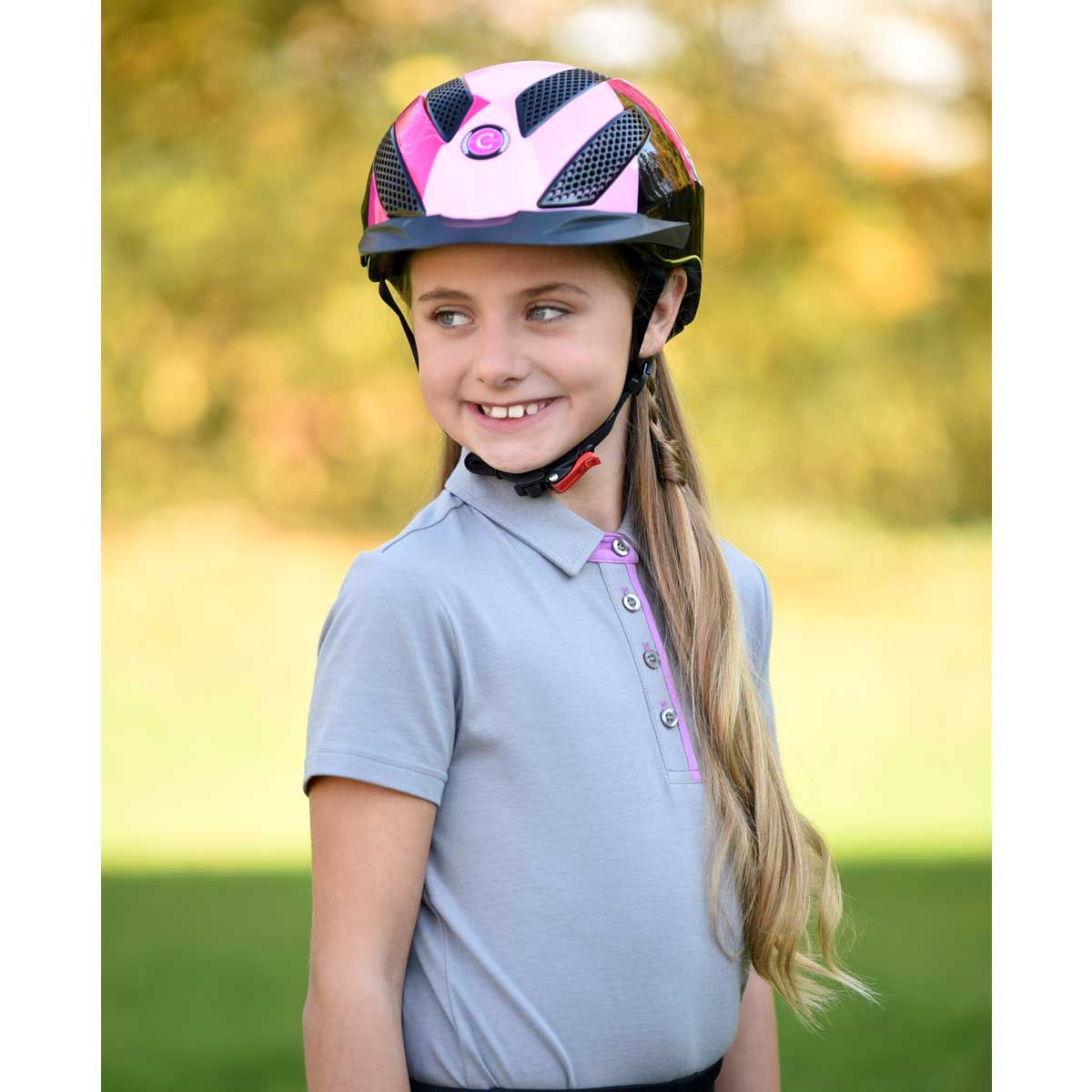 Ridhjälmen för barn från Covalliero övertygar med sitt unika utseende och sin design. Konstruktionen i formen minskar vikten till ett minimum och gör den här ridhjälmen bekväm att bära. Den utmärkta passformen och sex ventilationsöppningar för ett optimalt klimat under hjälmen gör eXite Lilli till en idealisk lågprisnybörjarhjälm för barn och ungdomar. Fast-Click-stängningen gör det möjligt att finjustera hakan i flera steg och att snabbt öppna den med en hand. Den mjuka, vadderade innerfodret kan tas bort för att enkelt rengöras i tvättmaskinen.