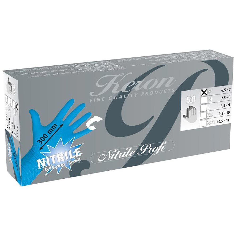 1x dispenserbox med 50 stycken Keron engångshandske Nitril Profi