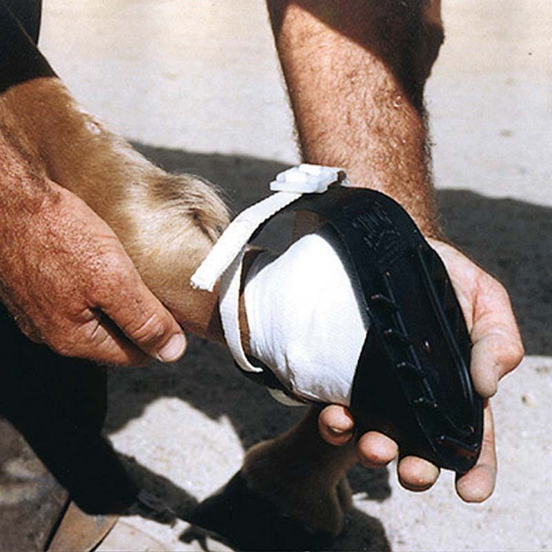 Den här hästskon är tillverkad av robust, hållbar polyuretan och används för att behandla skador eller inflammationer i hoven. Hovskon är lätt och mycket bekväm för hästen att bära.