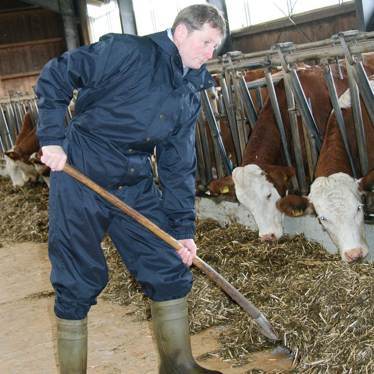 Den funktionella tvätt- och rengöringsoverallenKerbl med huva och hängande ögla i nacken är särskilt utformad för grovt och hållbart arbete inom jordbruket. Det slitstarka tyget är vattentätt, andningsbart och särskilt lämpligt för utomhusarbete. Tättslutande manschetter och dubbla benmanschetter ger optimalt skydd mot smuts och fukt.
