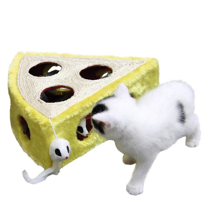 Det roliga för din katt. Formen på en osthörna med integrerade lekmöss är idealisk för din lekfulla huskatt.