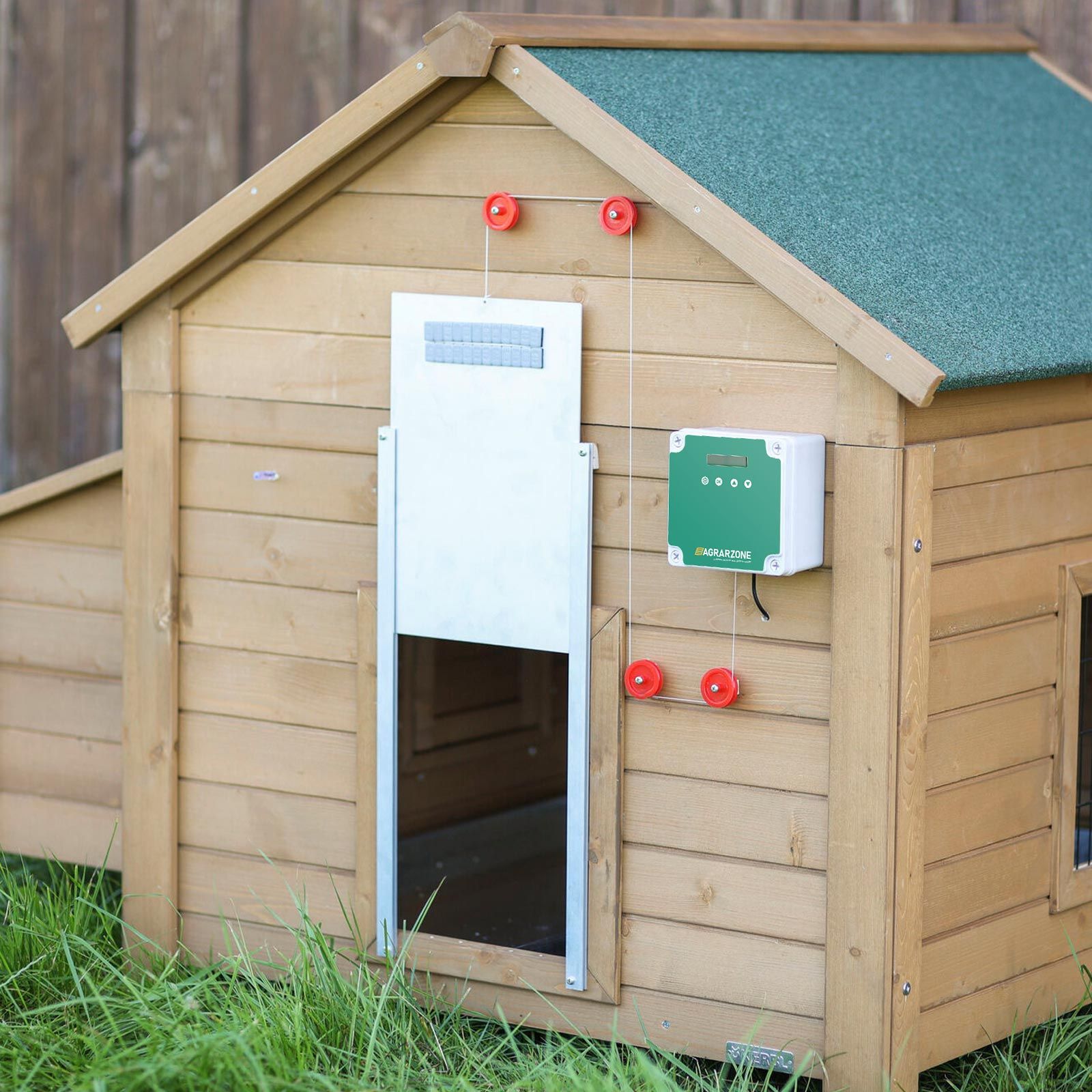 - Automatisk kycklinglucka med glidare 30 x 40 cm (för normala och större kycklingar).