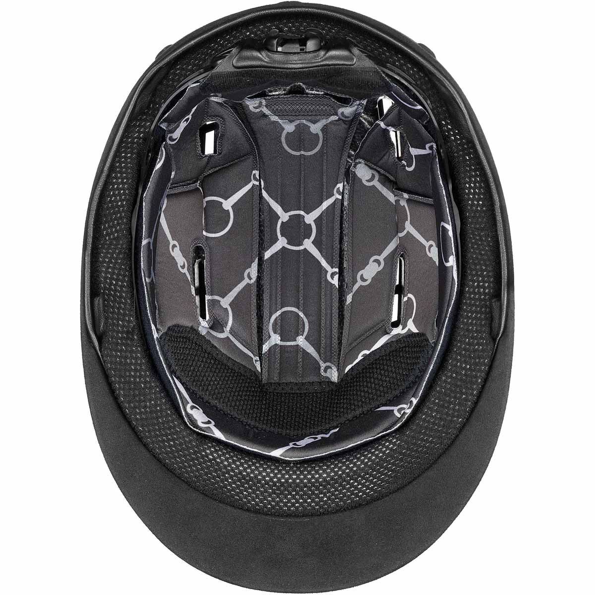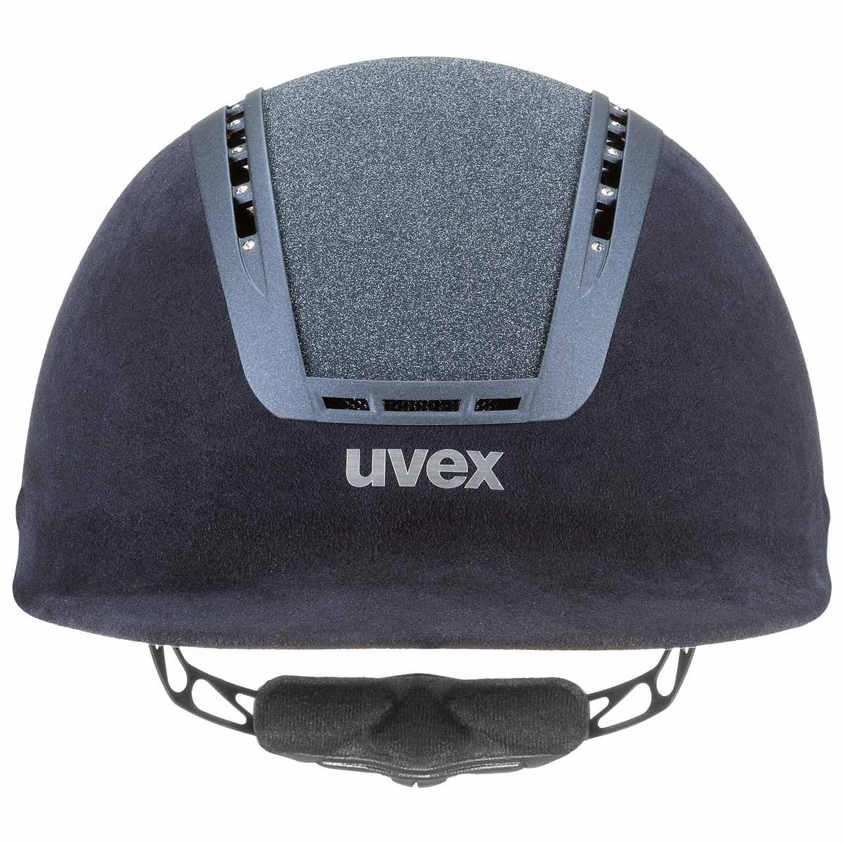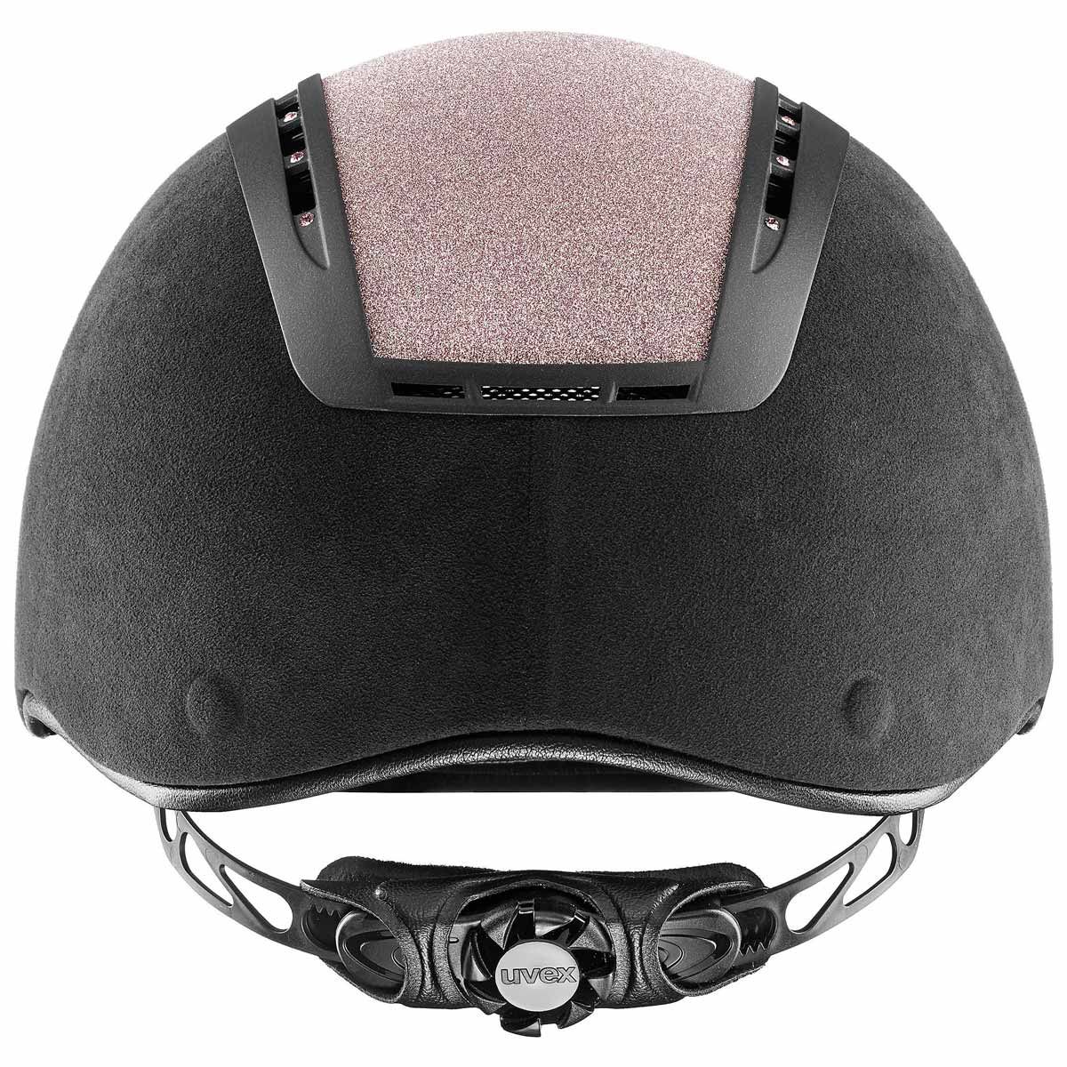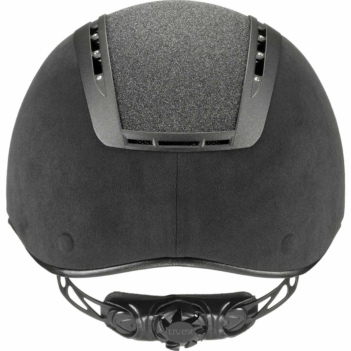 Ridhjälmen uvex suxxeed glamour övertygar med dyrbara Swarovski-kristaller och den glittrande Giltz-insatsen i kombination med svart imitationsvelour. Den här ridhjälmen har naturligtvis också högsta säkerhetsstandard.