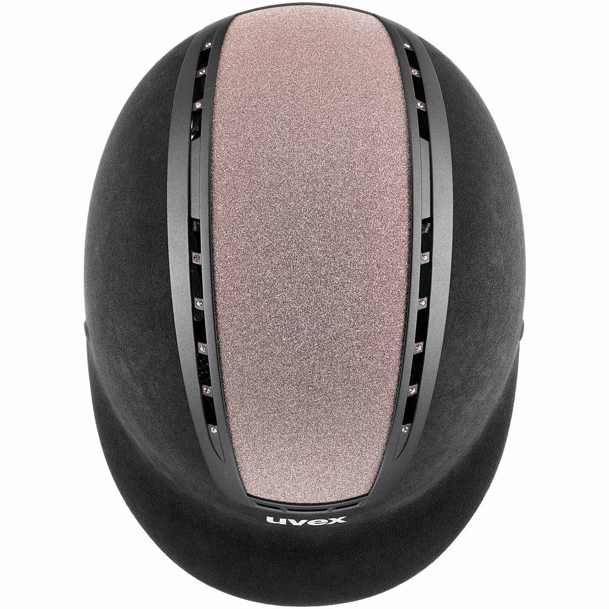 Den eleganta ridhjälmen från märket uvex övertygar med sin glittrande ram med Swarovskikristaller och glittertoppen.