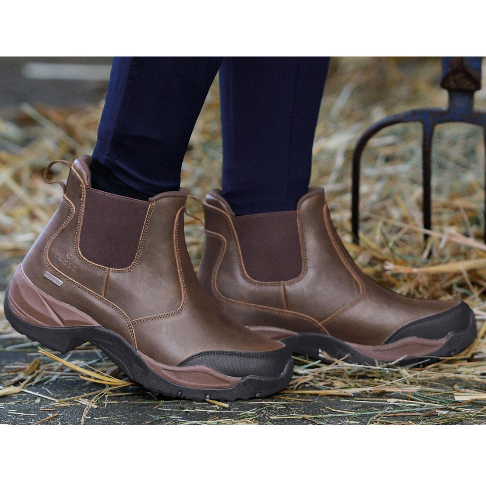 Funktionell, robust ankelstövel med robust sula och genomgående stopp för maximal säkerhet i stigbygeln.