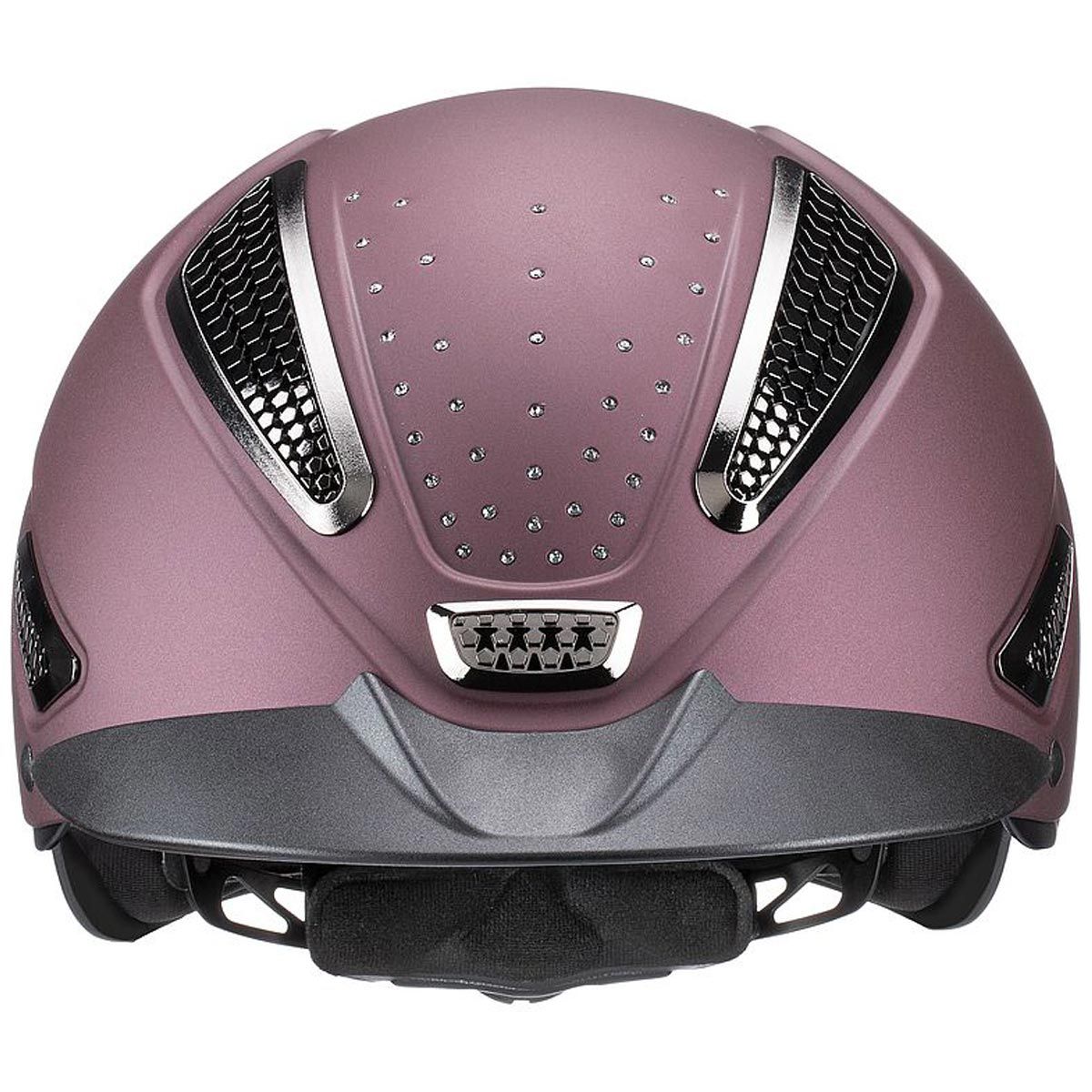 uvex perfexxion II grace i två matta färger är ett måste för alla kvinnliga ryttare som tycker att det är alldeles för tråkigt med understatement i sadeln. Detta beror på de 38 original Swarovski®-kristaller som lagts in för hand och som i kombination med förkromade ventilationsgaller, eleganta bandskydd och läderimitationer gör hjälmen till ett exklusivt blickfång.