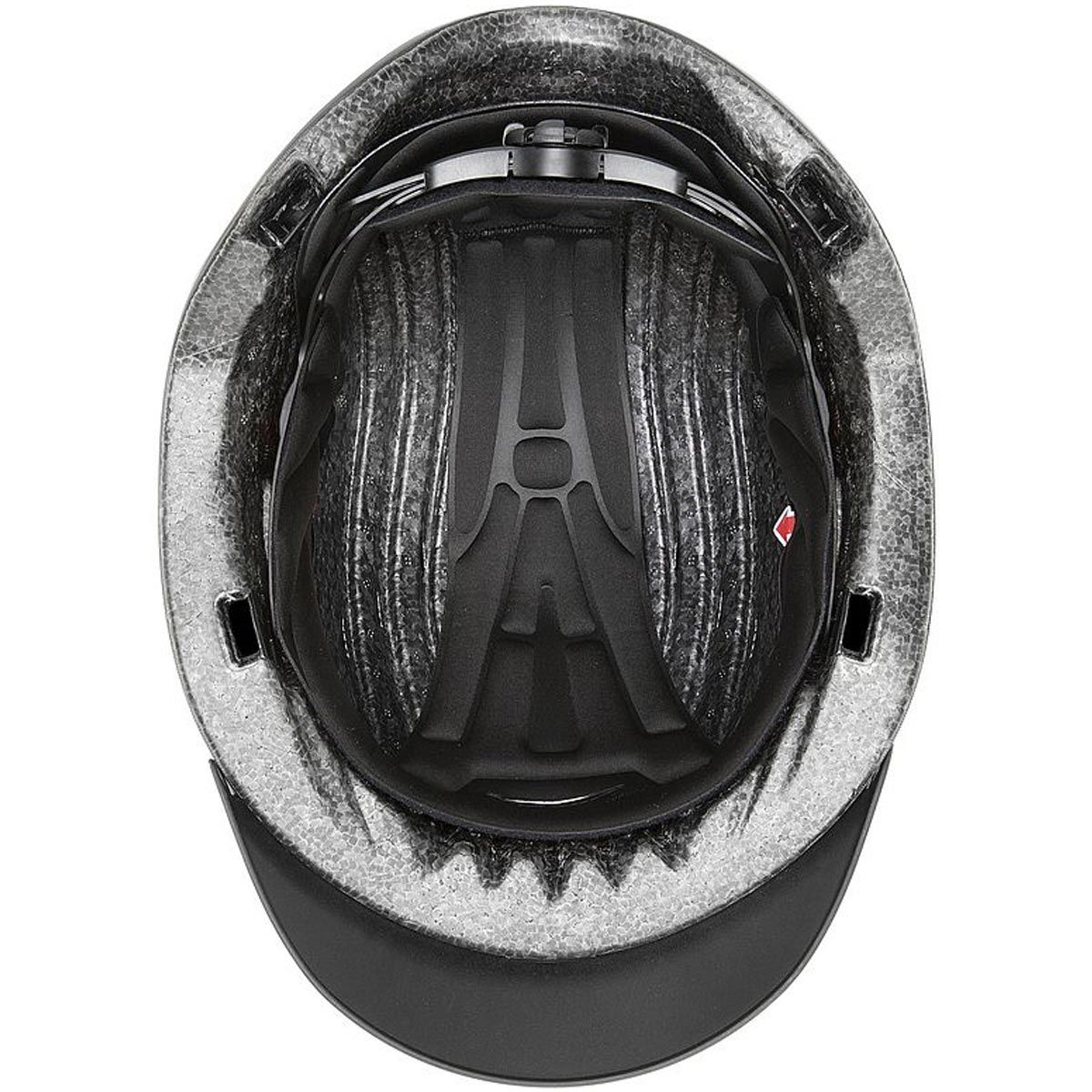 Den här mycket speciella ridhjälmen ger extra säkerhet genom ökad synlighet med den passiva hjälmbelysningen. De tvåfärgade LED-spottarna (vita på sidan, röda på baksidan) syns inte på dagen och aktiveras med en knapptryckning. Det finns totalt tre lägen: konstant, blinkande och pulserande. Kontrollen sker via en plug-in LED med magnetiskt fäste på baksidan av huvudet. Den fungerar som en extra bakljus och innehåller även batteriindikatorn. Beroende på läget räcker en laddning mellan 6 och 12 timmar. Särskilt praktiskt: uvex exxential II LED uppfyller rid- och cykelhjälmsnormen, så att ryttare som cyklar till stallet alltid är perfekt skyddade.