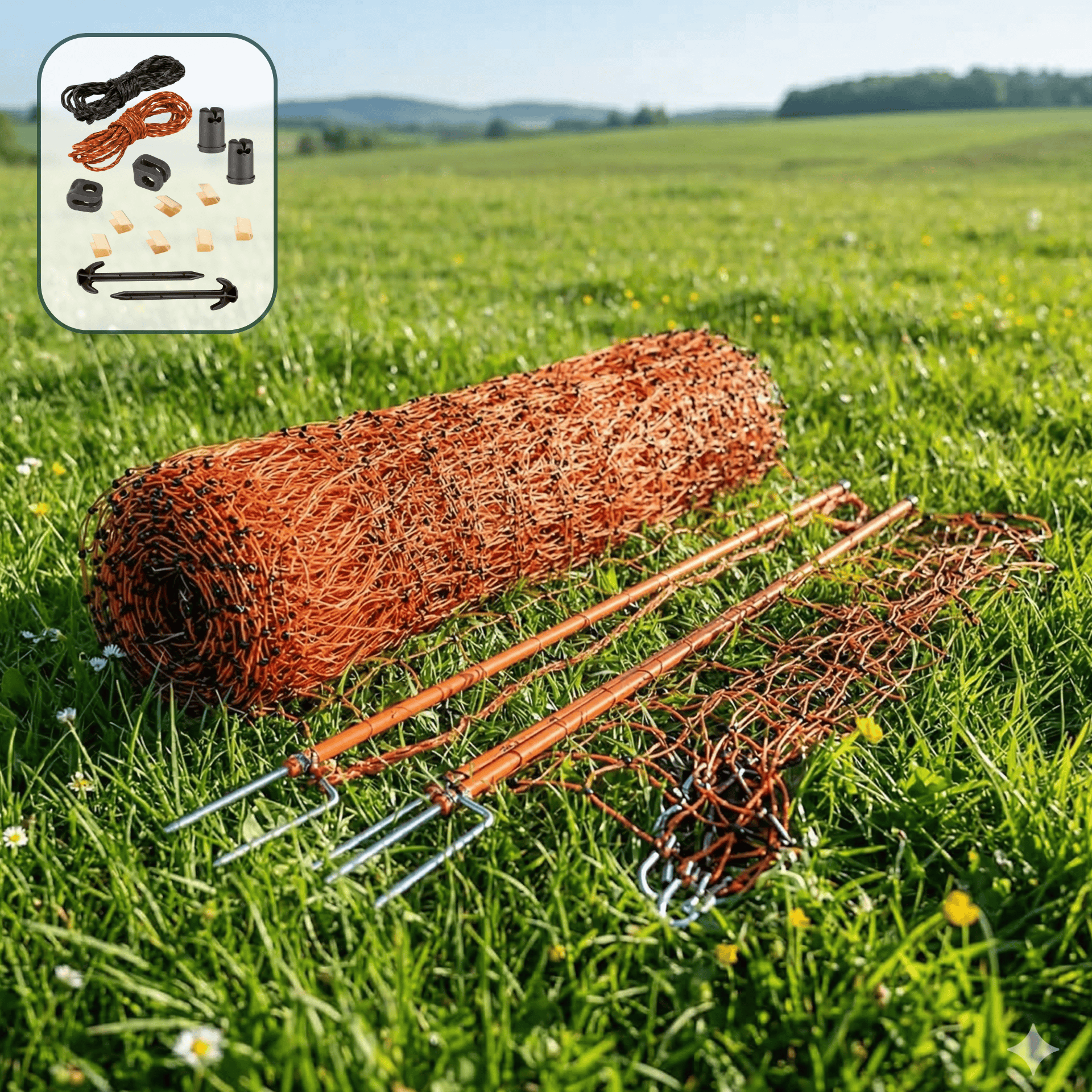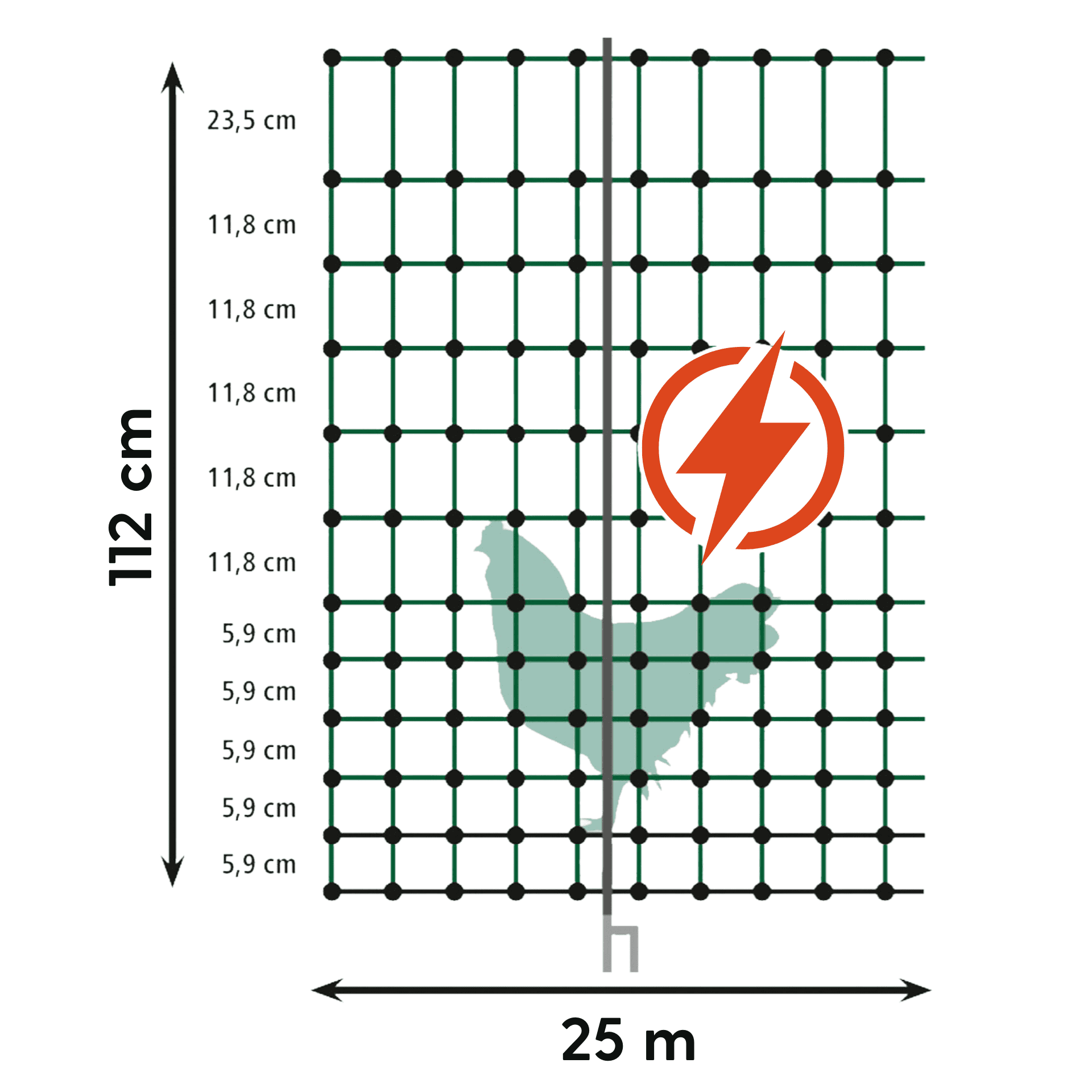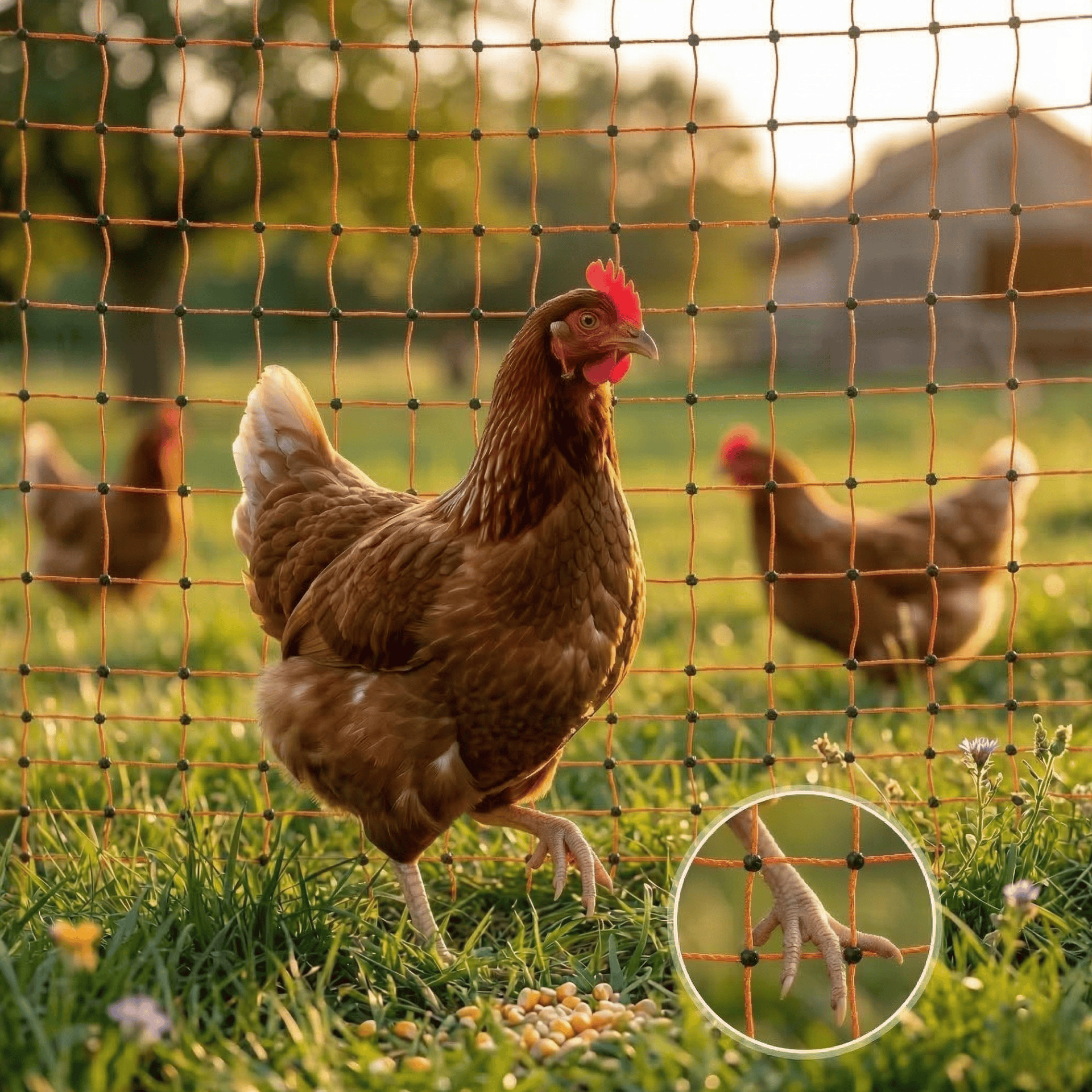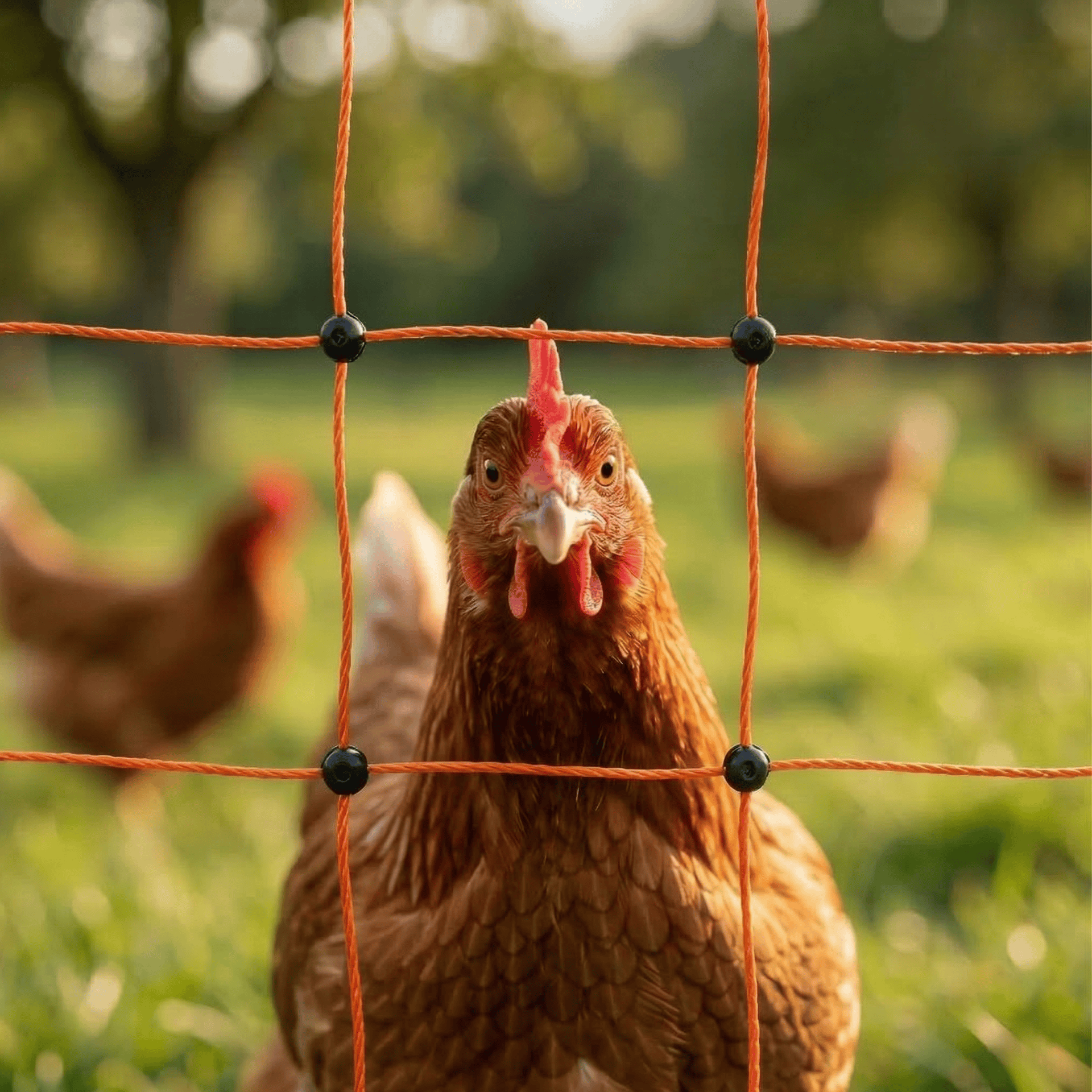 Icke-elektrifierbara nät (utan elektricitet) är ett enkelt sätt att stänga in. För optimal säkerhet (mot mård, hund, räv osv.) bör nätet vara elektrifierat. Detta förhindrar att djuret biter sig fast eller glider igenom. För detta behöver du ett lämpligt stängsel för fjäderfä, som inte ingår men som du kan köpa billigt i vår onlinebutik.