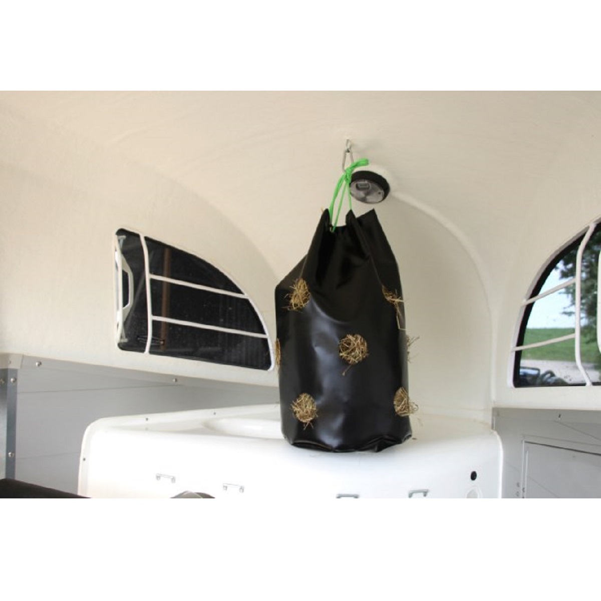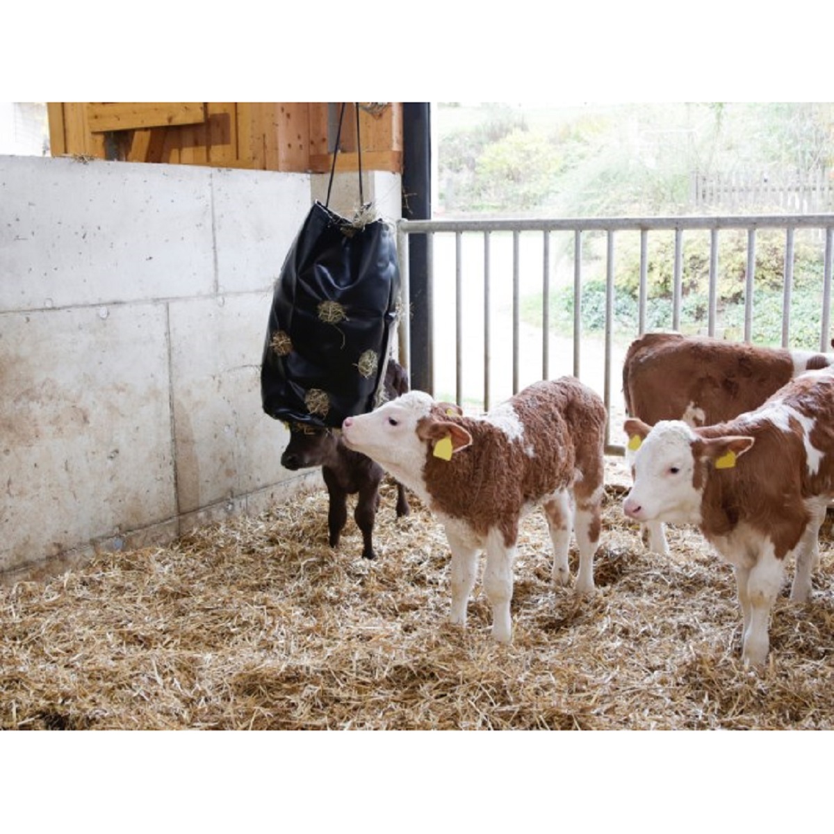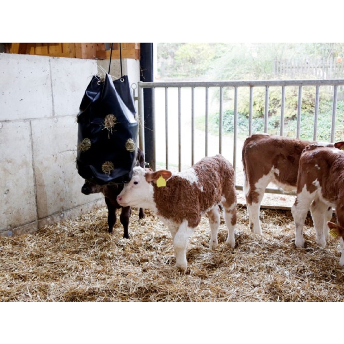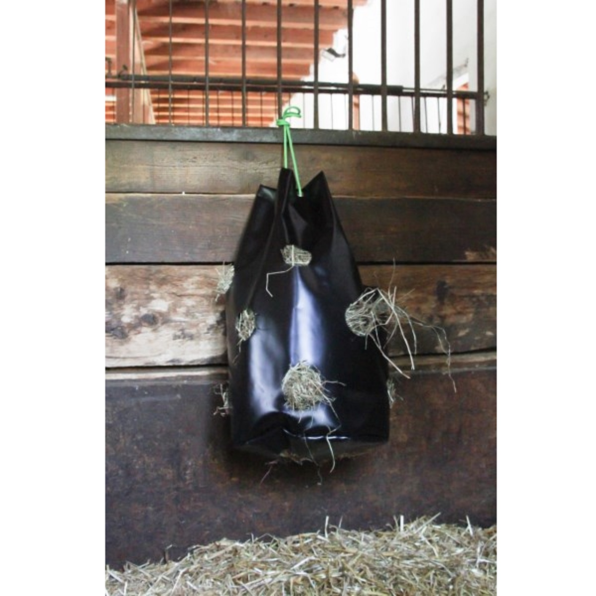 HayBag från Kerbl kombinerar många fördelar i en och samma produkt. I motsats till att utfodra hö på marken minskar foderförlusten med ca 15 % och samtidigt uppmuntras en långsam och hästvänlig utfodring. Till skillnad från hönät är HayBag-hösäcken mycket lätt att fylla och lätt att rengöra. Den släta ytan minskar risken för skador. HayBag är mångsidig och kan användas i hästboxen, på hagen, i släpvagnen och på turneringar. Håldiametern är ca 8 cm.