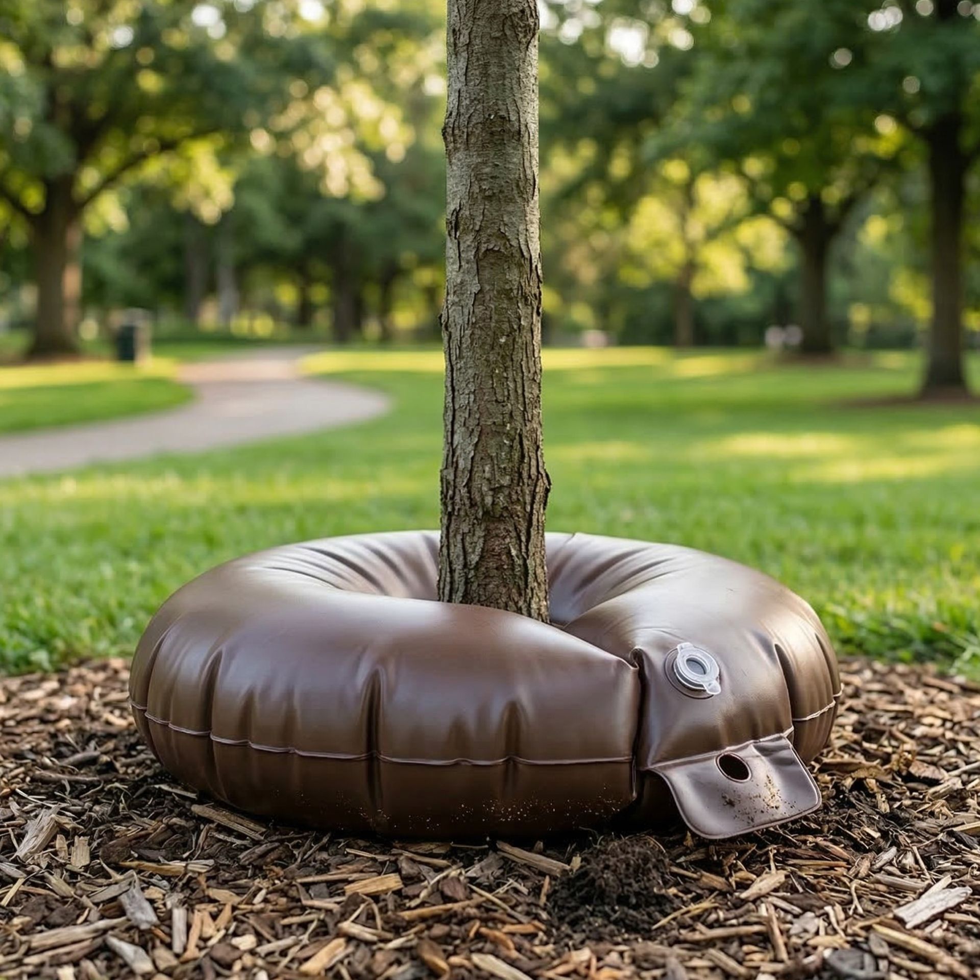 Trädbevattningspåsen placeras snabbt och enkelt runt trädstammen och kan sedan fyllas med vatten. Tack vare den långvariga bevattningen får träden vatten under längre tid även under torra perioder och en riktad rotbevattning garanteras. Vattenpåsen skyddar träden, särskilt unga träd med korta rötter, från att torka ut. Vattningsringen är lämplig för träd med stammar på upp till Ø 15 cm.