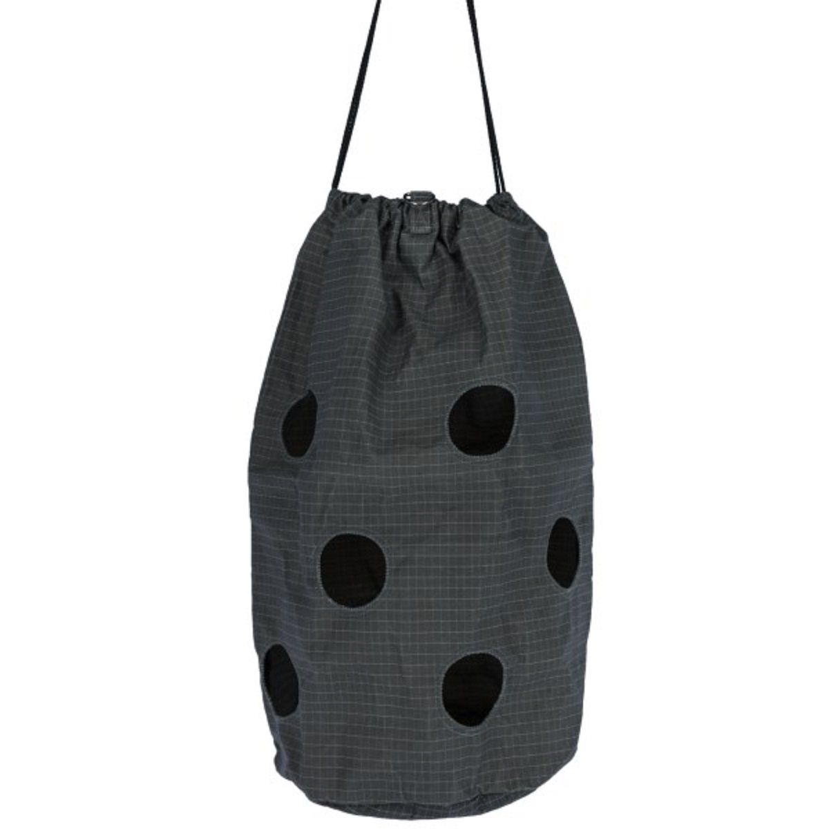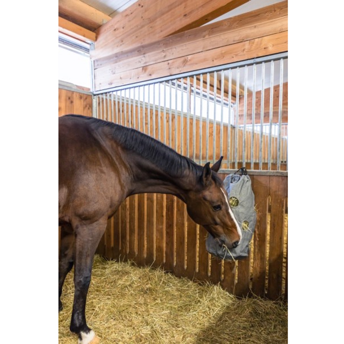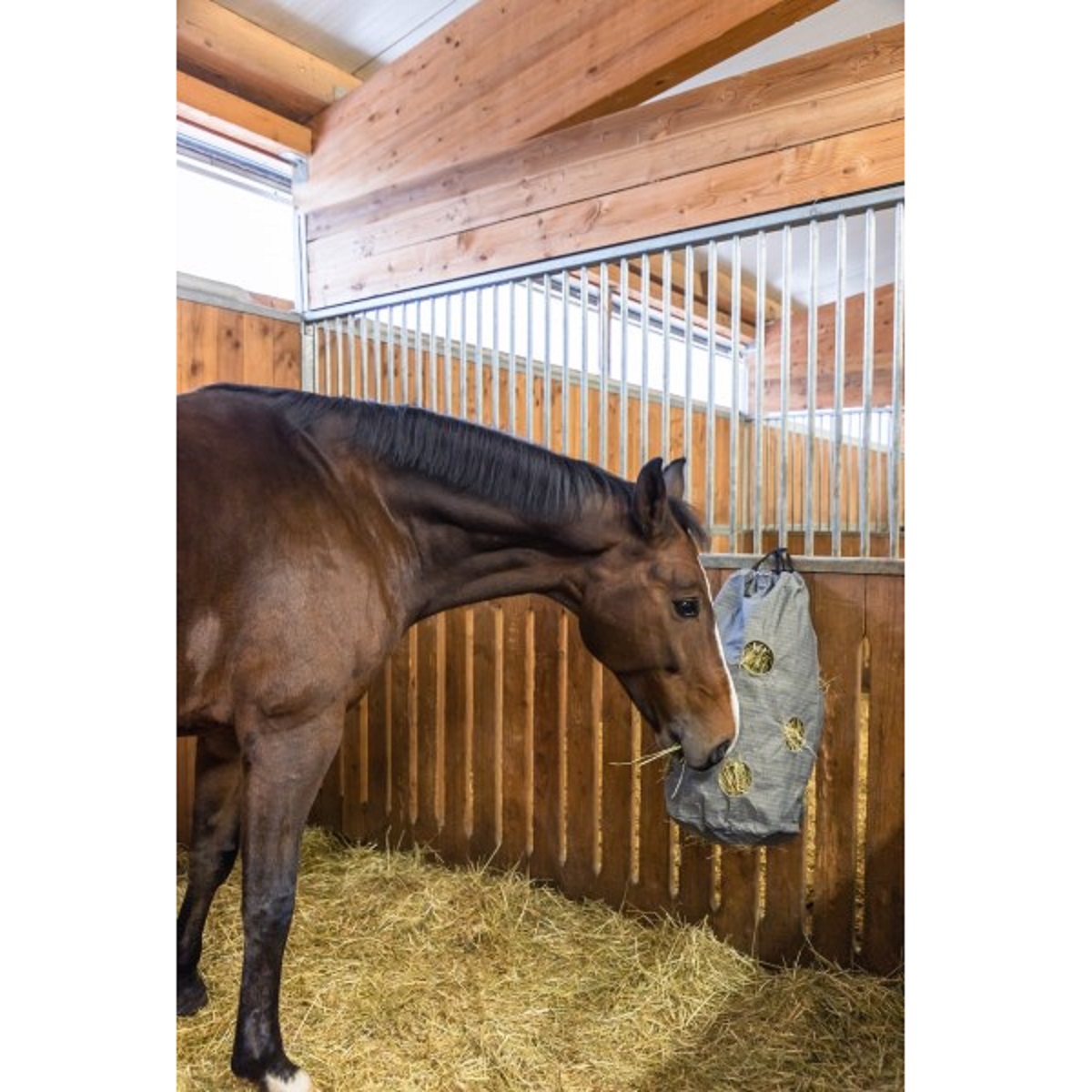 Kerbls nya HayBag i bomull kombinerar många fördelar i en och samma produkt. I motsats till att utfodra hö från marken minskar höpåsen foderförlusten med ca 15 % och främjar dessutom en långsam och hästvänlig utfodring. HayBag hösäckar är lätta att fylla utan hjälp. Dessutom innebär den släta ytan att risken för skador är mindre än t.ex. med hönät. HayBag kan användas på många olika ställen, i hästboxen, på betet, i släpvagnen och på turneringar är den här höpåsen mycket populär. Håldiametern är ca 8 cm med 20 cm mellanrum.
