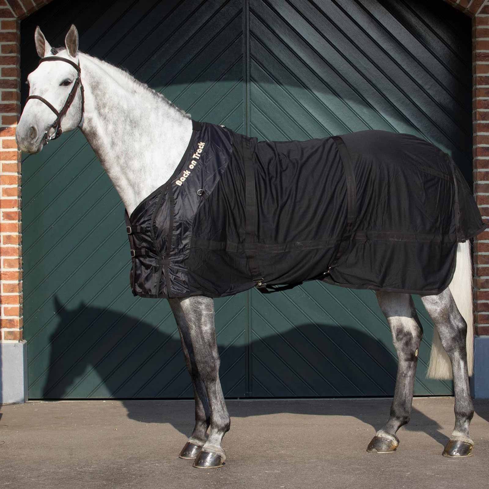 Den perfekta hästmattan för dig som vill njuta av den berömda back on track-effekten året runt. Back on track mesh-mattan består av ett tunt tyg av polypropylen med smälta keramiska partiklar som är omgivet av ett tunt nät-material, denna kombination garanterar maximal andningsförmåga och främjar blodcirkulationen. Med sina egenskaper kan nätmattan användas året runt. I stallet, som transporttäcke men även under ett regntäcke, på svala dagar eller i kombination med ett varmt vintertäcke på betet, är hästtäcket mångsidigt. Även före och efter träningen har nätmattan en positiv effekt på musklerna tack vare de keramiska partiklar den innehåller.