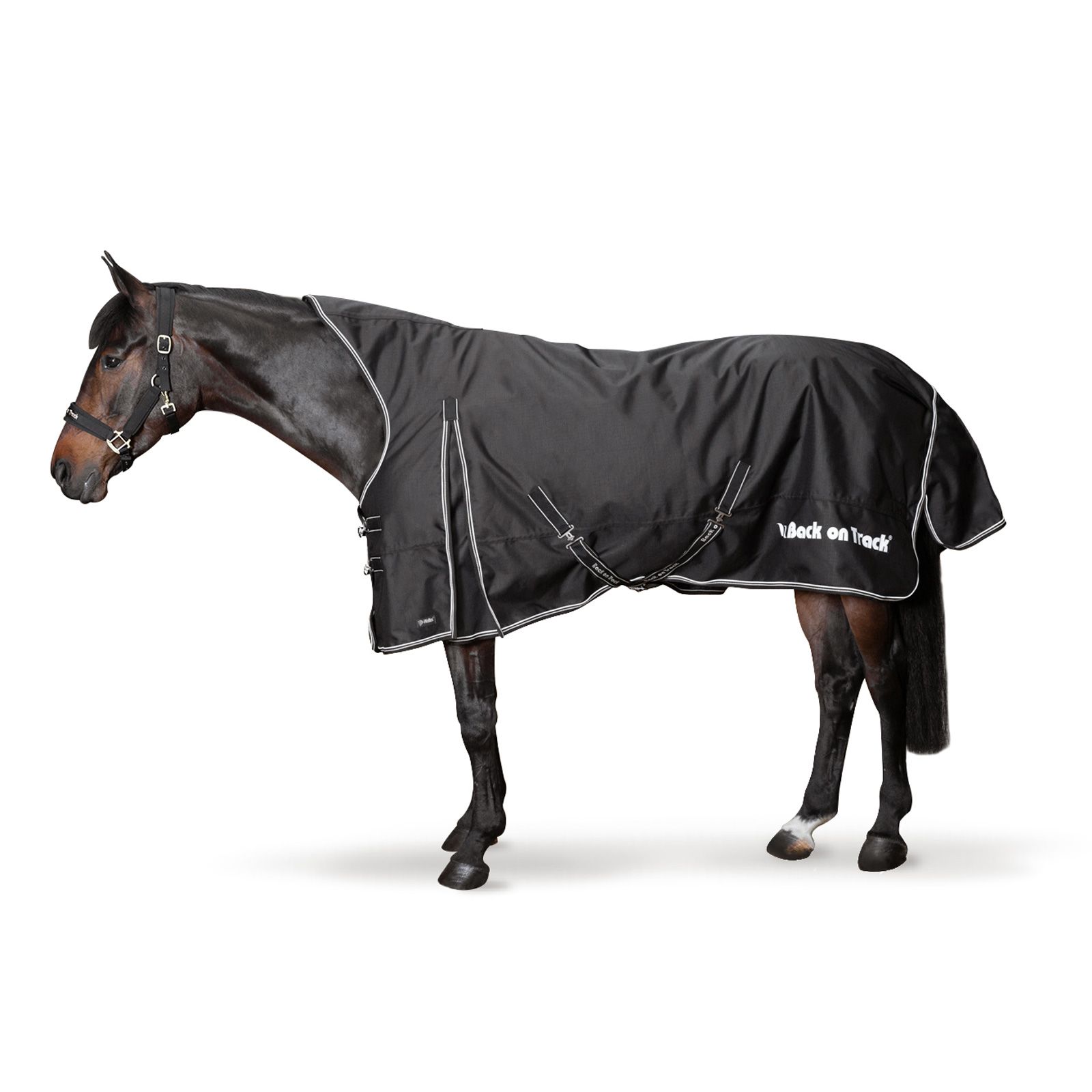 Back on Track Horse Turnout Rug är en mångsidig matta som kan användas både i milt väder och i låga temperaturer tack vare sin 50 g isolering och goda andningsförmåga. Innerfodret är tillverkat av back on Track's välkända Welltex-material. Det stöder blodcirkulationen i hästens muskler. Det antibakteriella innermaterialet i hästtäcket motverkar skav i pälsen. Filten är utrustad med en hög halsringning och en stor svanslucka. Dessa delar av filten har extra mjukt tyg på insidan, precis som axelområdet, för att förhindra skav.