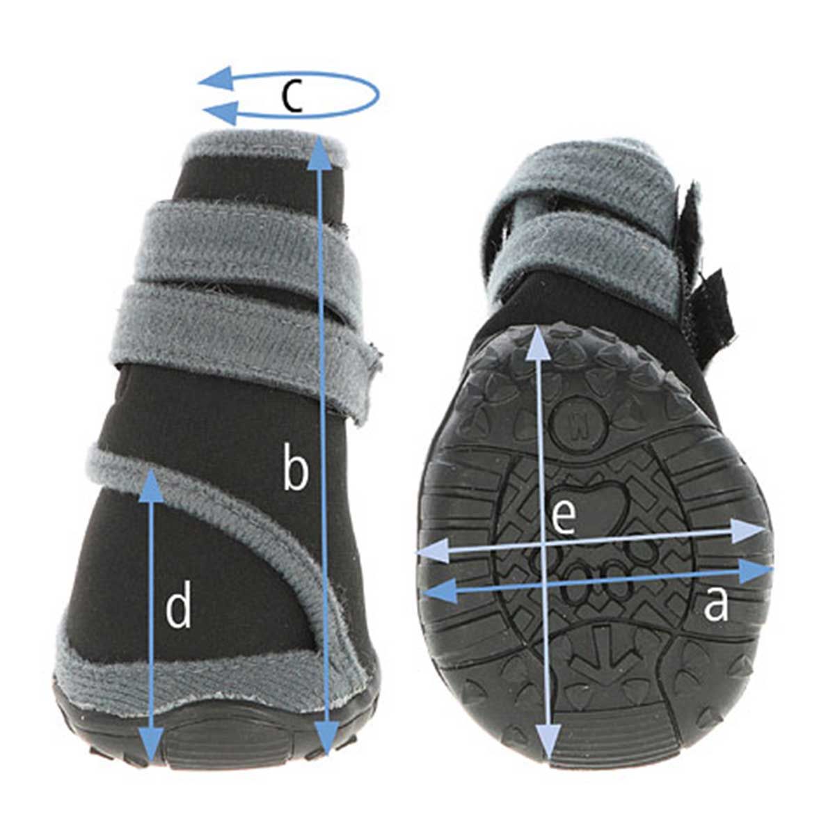 Använd alltid den bredaste delen av tassen när du väljer storlek. Om ditt mått ligger mellan två storlekar, välj de större skorna.