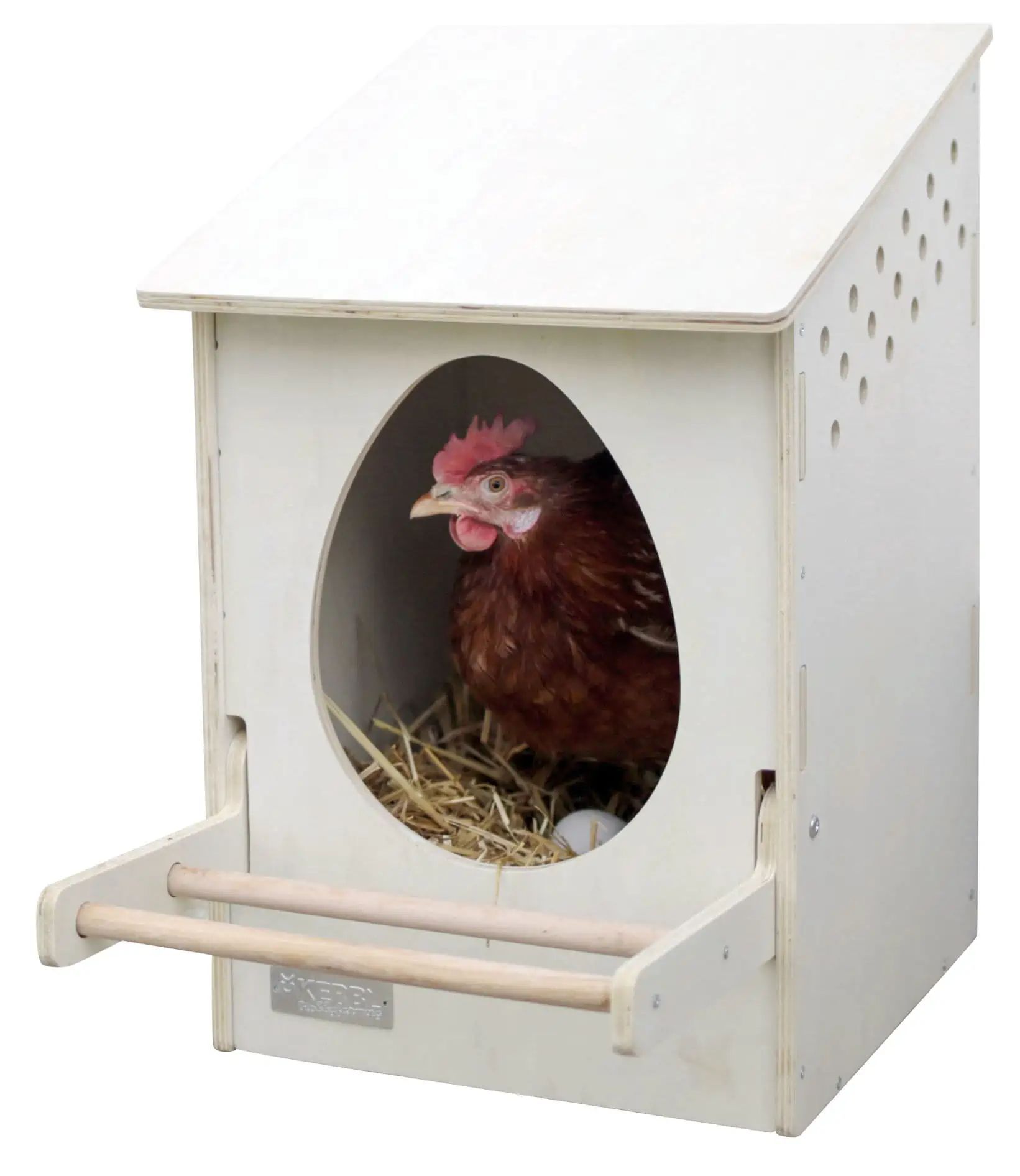 Trätestet erbjuder kycklingar en naturlig och bekväm miljö för ägglagning. Den har en tangoöppning, ventilationsöppningar för luftcirkulation och ett gångjärnstak för enkel rengöring. Dess stigande tak förhindrar att kycklingar står upp och det kan också hängas upp.