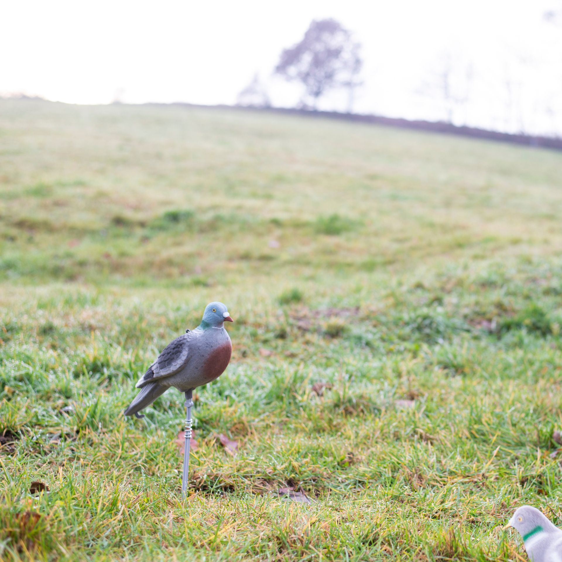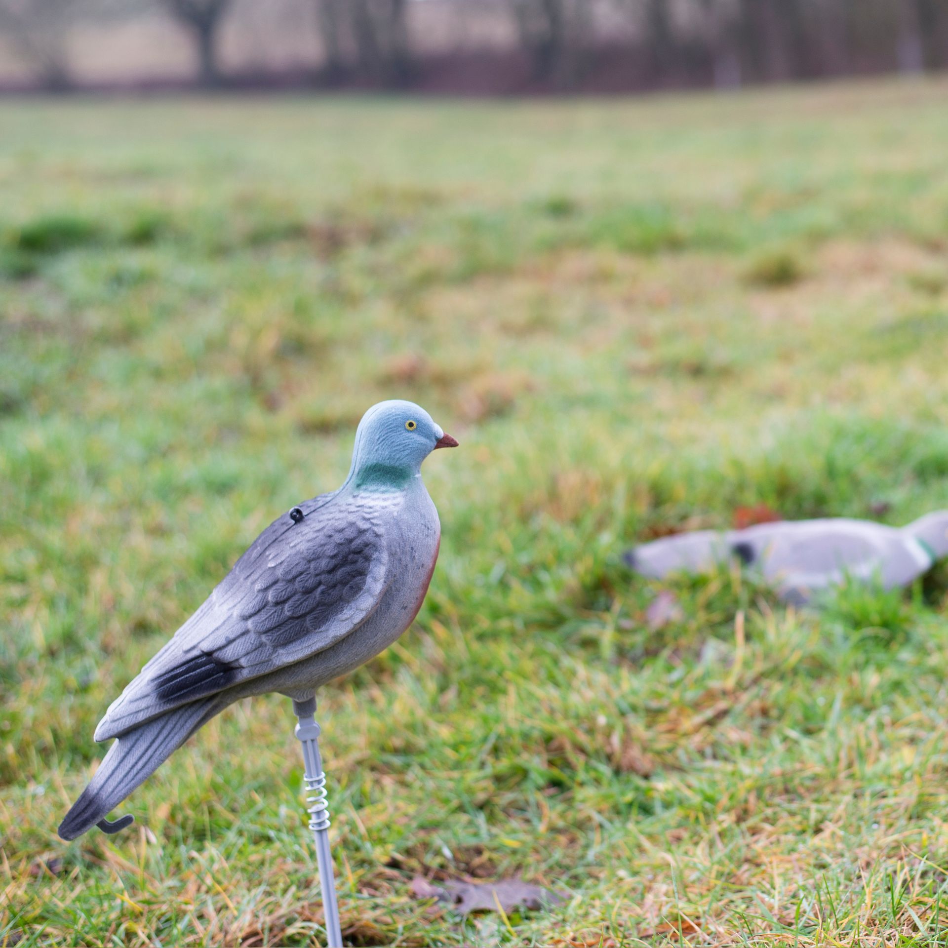 Curly Pigeon har två öppningar på baksidan där du kan sätta in markspetten. Detta gör det enkelt att imitera beteendet att äta duvor eller andra situationer för att göra din jakt ännu mer framgångsrik.