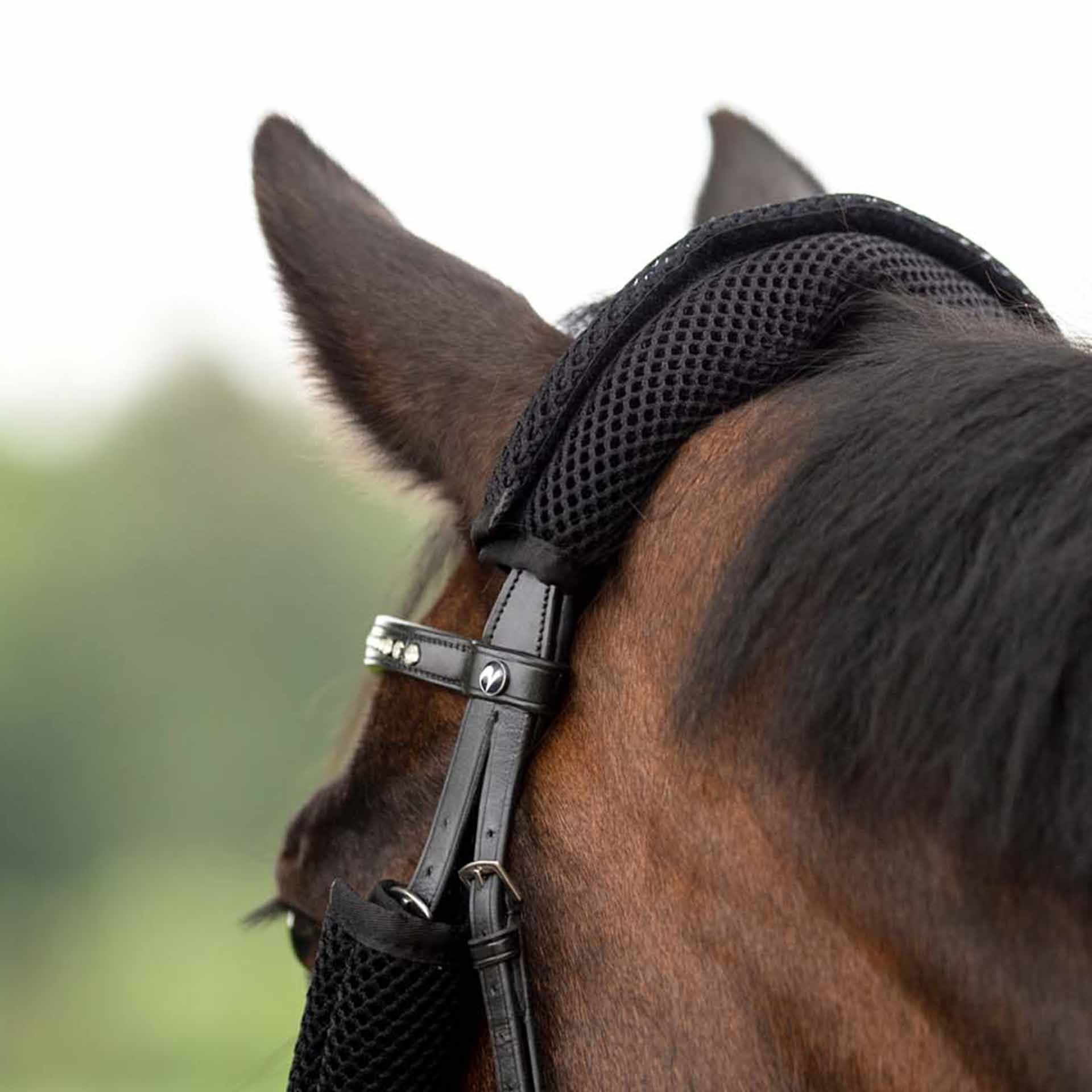 Dessa är gjorda av mycket funktionella, innovativa 3D Air® -effektmaskmaterial. Detta tredimensionella syntetiska mesh-tyg säkerställer utmärkt tryckfördelning, formstabilitet, exceptionell luftcirkulation och snabbtorkningsegenskaper. Detta gör dem särskilt lämpliga för hud, päls och tryckkänsliga hästar på huvudet.