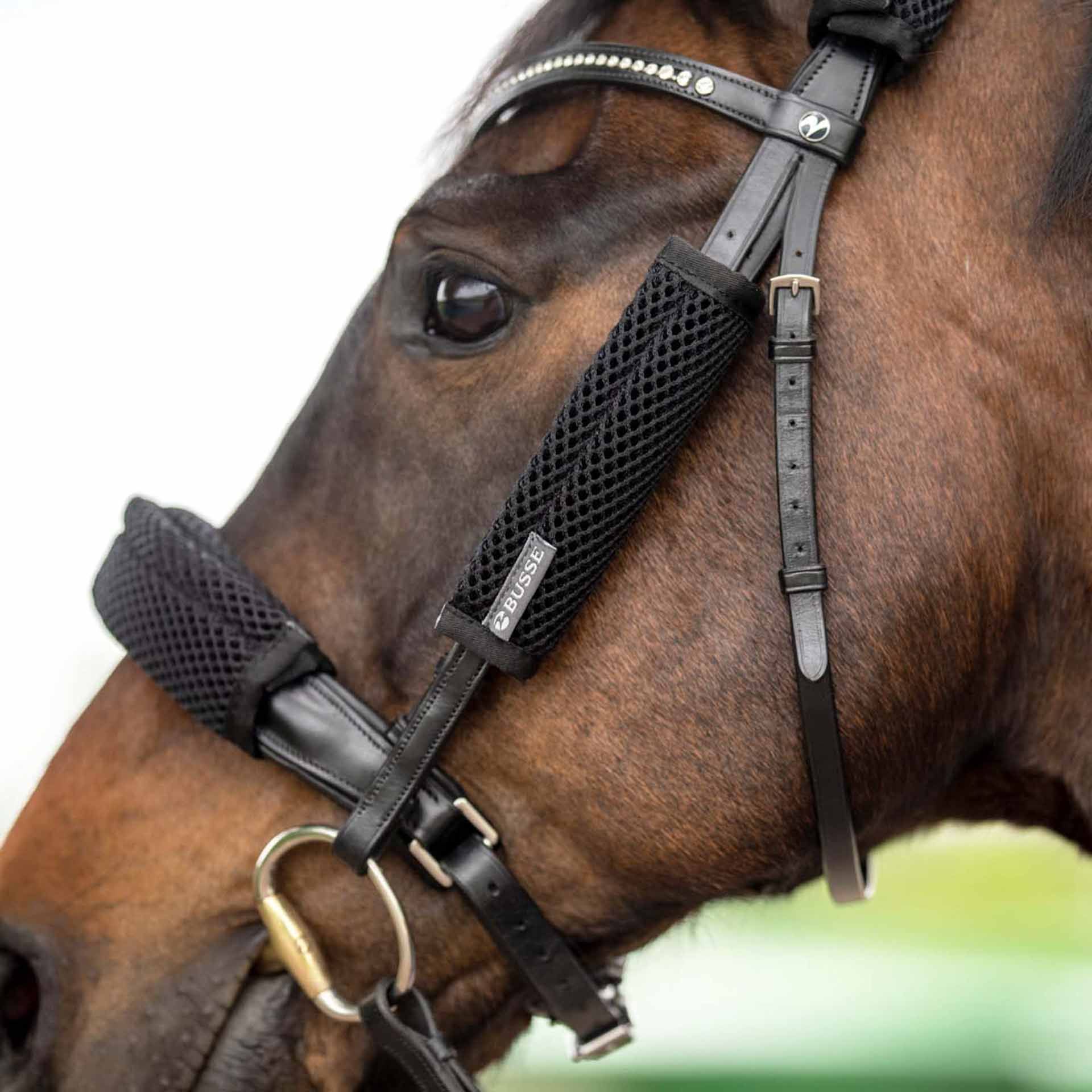 Bussens nasal, nacke, bakningssektor Set 3D Air Effect är idealisk för ryttare som vill förbättra komforten och hudskyddet för sina hästar. Det är särskilt användbart för hud-, pälskänsliga och tryckkänsliga hästar på huvudet och kan användas både på sommaren på paddocken/på betesmarken såväl som vid ridning, där värmeuppbyggnad och svett under läder, neopren eller Pälsunderlag leder snabbt till problem.