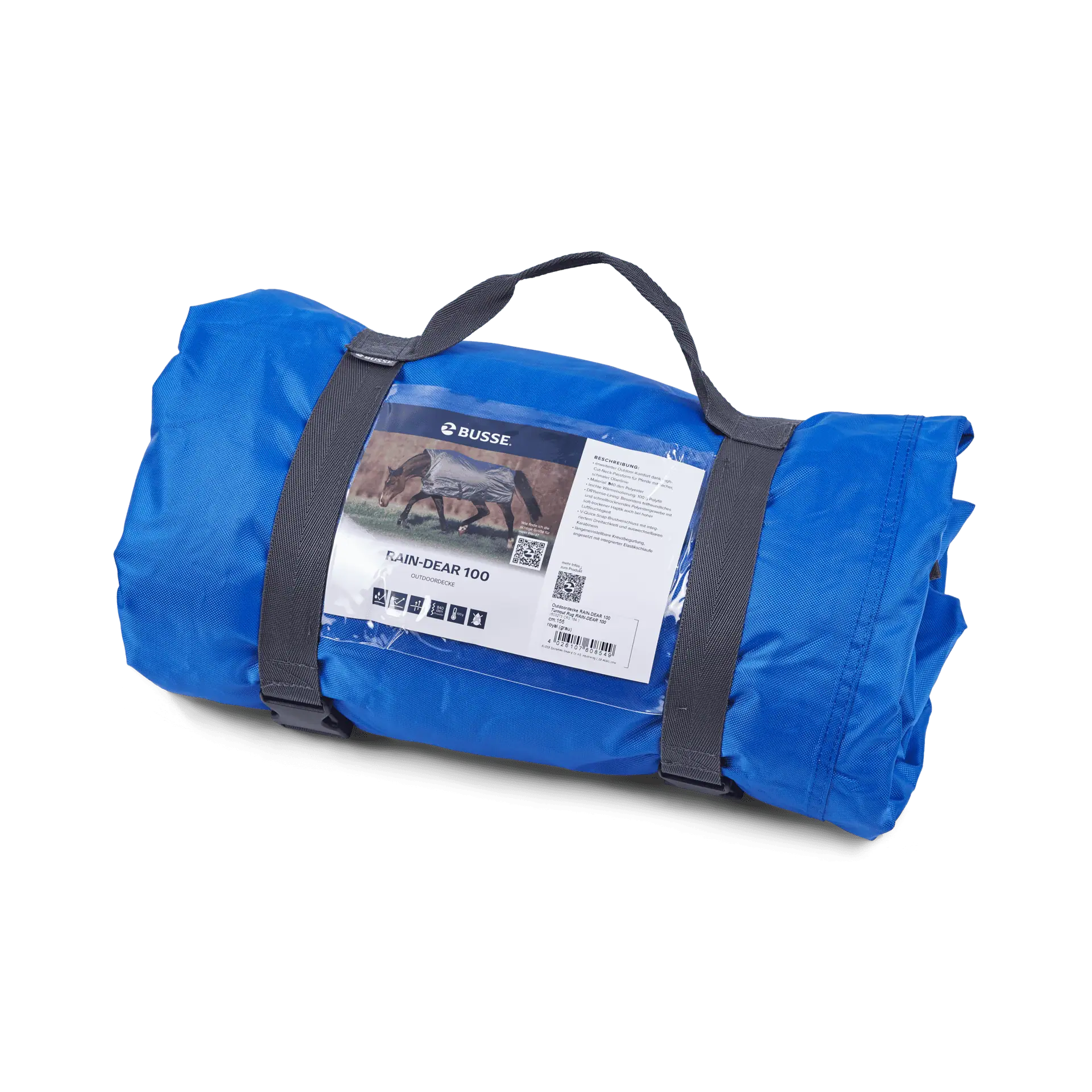 Busse Outdoor Cover Rain-Dear 200 är en högkvalitativ filt med medelhög termisk isolering, som erbjuder utmärkt skydd med varje väder. Den är optimalt skräddarsydd mot hästar med en platt, smal övre linje och erbjuder utökad utomhuskomfort tack vare sin högskuren-passform.