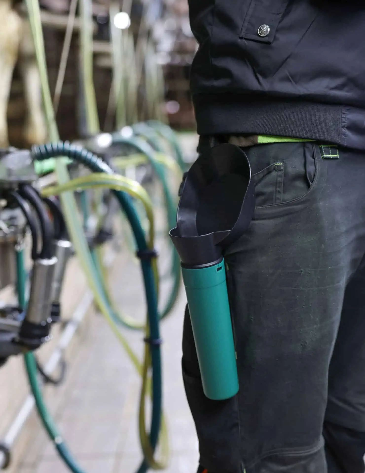 pre -melting cup är ett oumbärligt instrument för att kontrollera mjölkkvalitet och juverhälsa före mjölkning. Den är utrustad med en praktisk bältekrok, som underlättar hantering och möjliggör alltid -Read Positioning.
