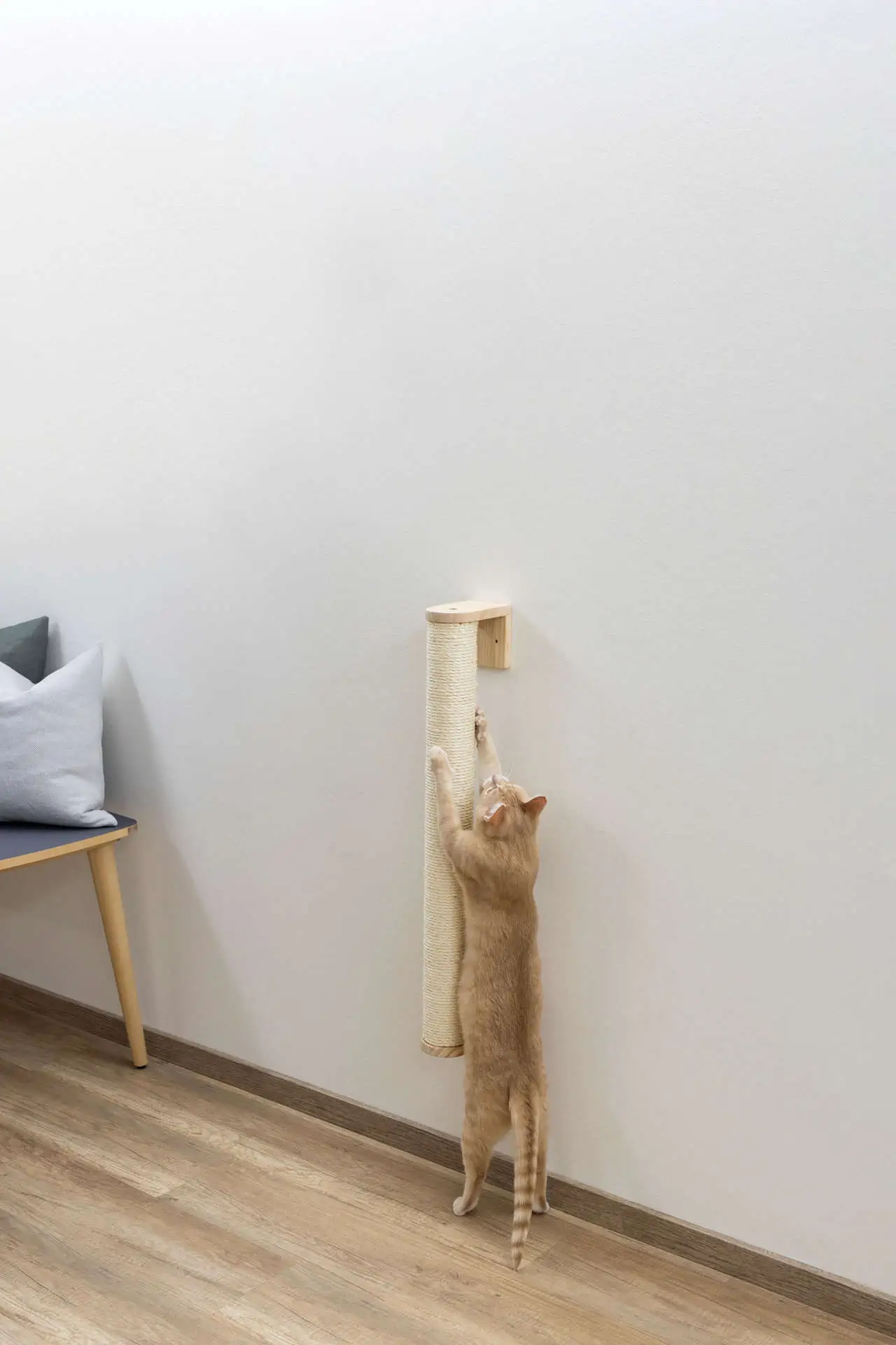 Väggskrapekolonnen är täckt med naturligt rep och kan fästas individuellt på väggen. Det stöder den dagliga kloomsorgen för din katt och kan också användas för att utöka befintliga klättringsväggar eller väggskrapsträd.