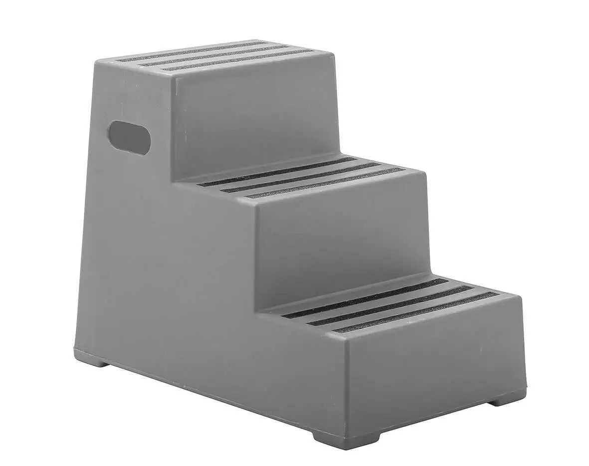 Det praktiska klätterhjälpen är tillverkat av robust PE-material och är halkfritt tack vare ytan med en räfflad struktur. Stödets breda kant gör det nästan omöjligt att välta. Alla hörn är rundade. Färg: grå.