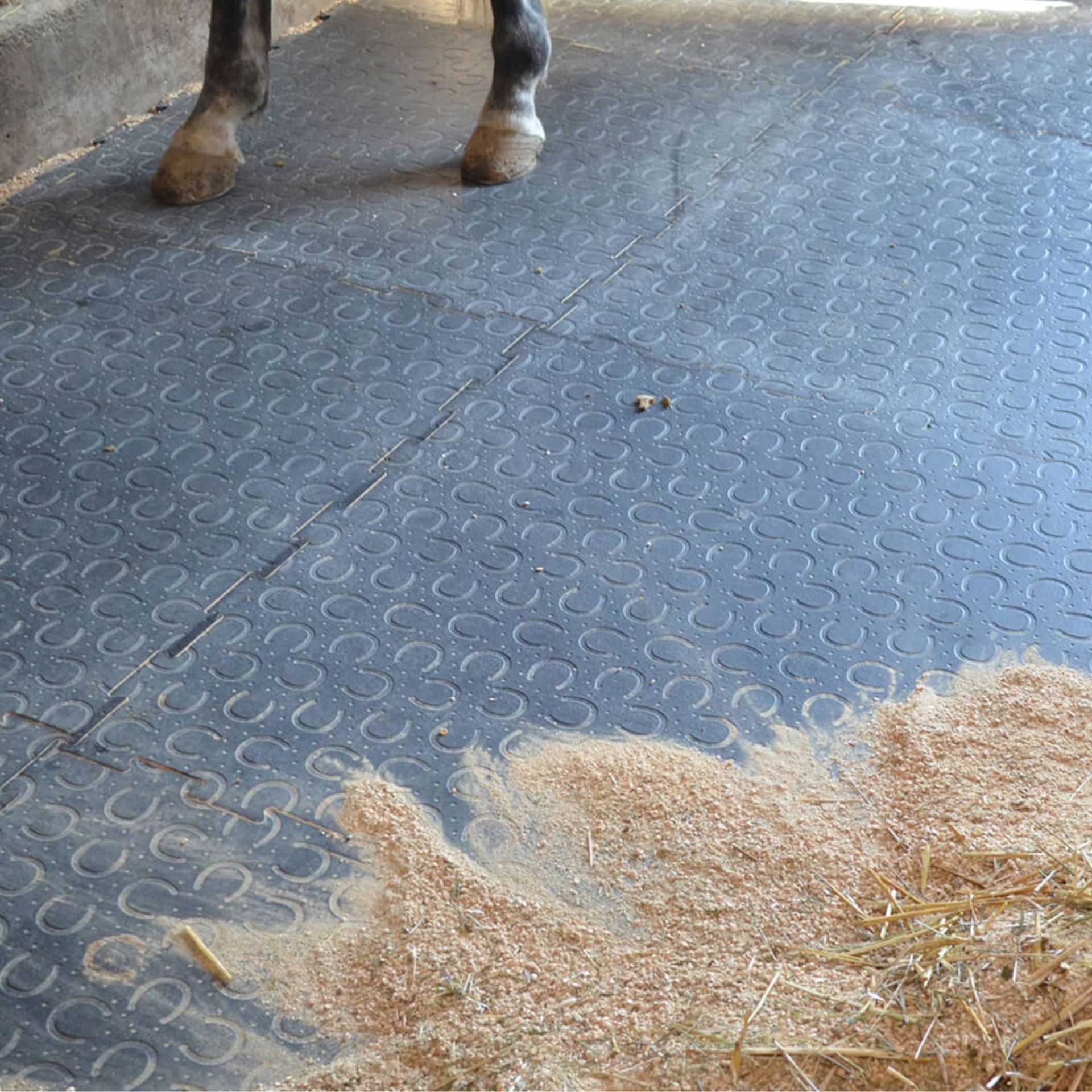 Den speciella elasticiteten och den mjuka ytan skonar hästens känsliga hovar och minskar risken för att hovarna slits. Dessutom isolerar den mot kyla från underlaget och bidrar därmed till ett bättre stallklimat.