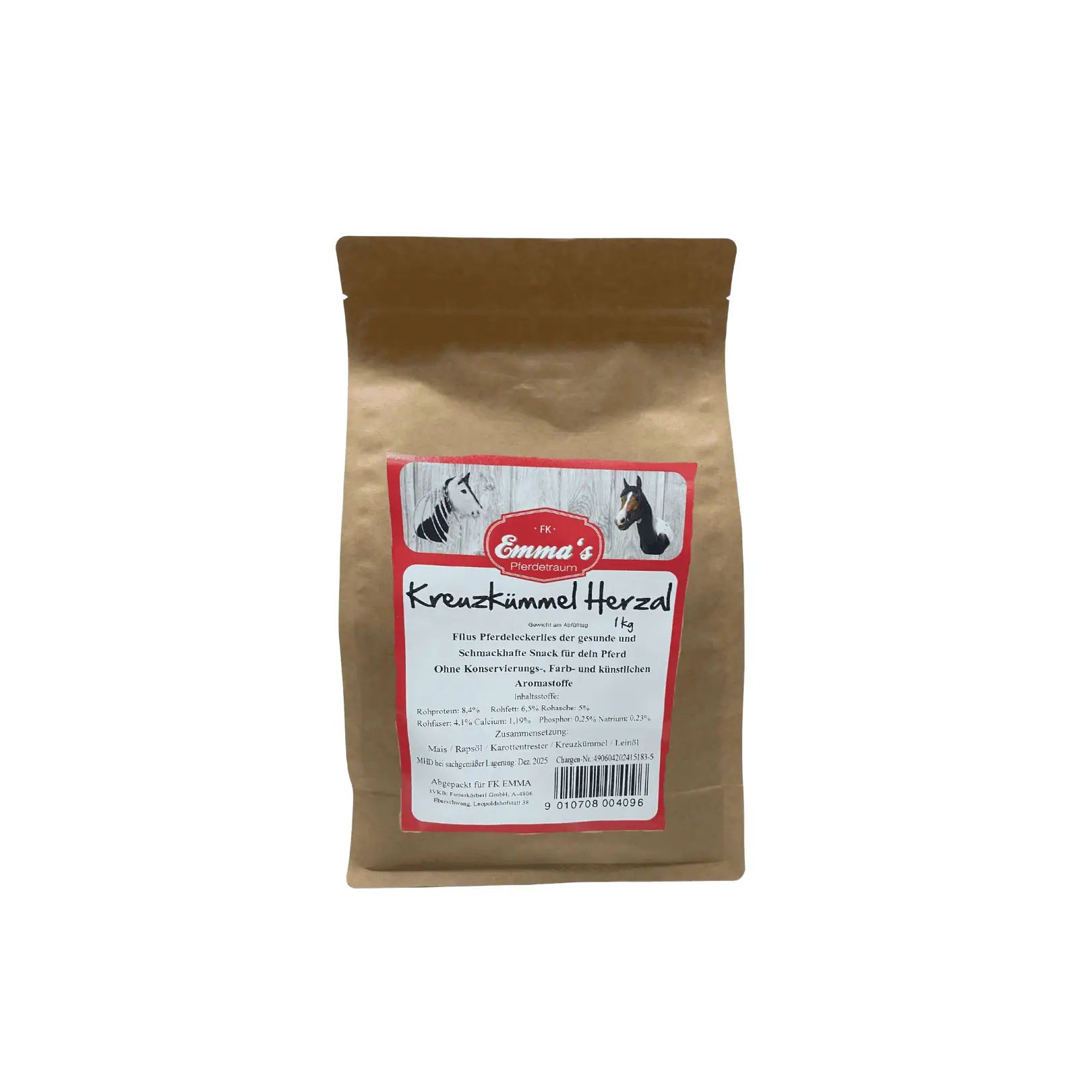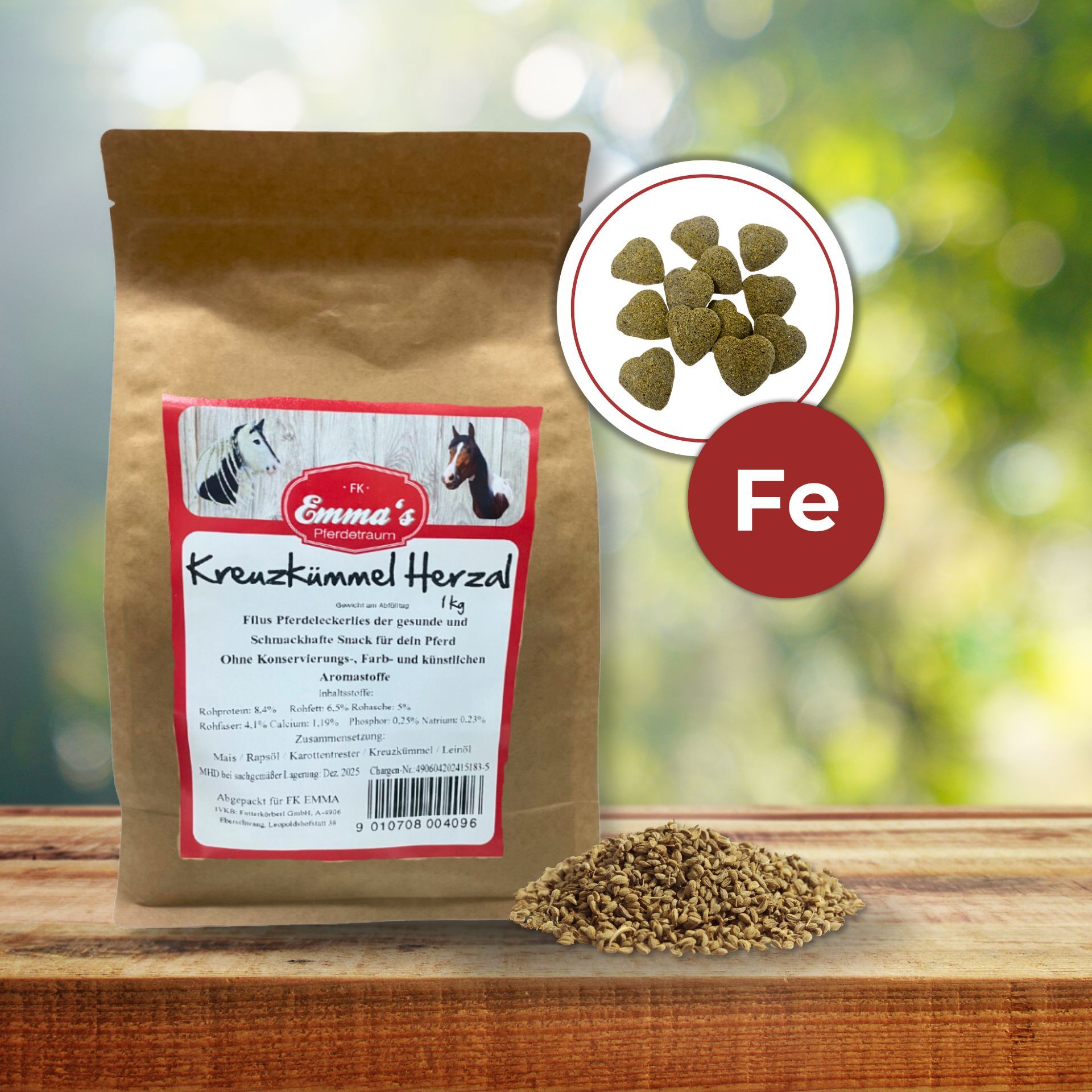 Emma's Horse Treat Cumin Hearts are the perfect reward for your horse. These natural treats are not only extremely flavorful but also particularly wholesome. 100% natural, without any artificial colorings or preservatives, and free from flavor enhancers – meaning they are completely free of chemicals. Produced in a small mill in Germany, they guarantee a very high acceptance rate among horses. These hearts are ideal for all horse lovers who value natural and high-quality ingredients in their animals' diet.
