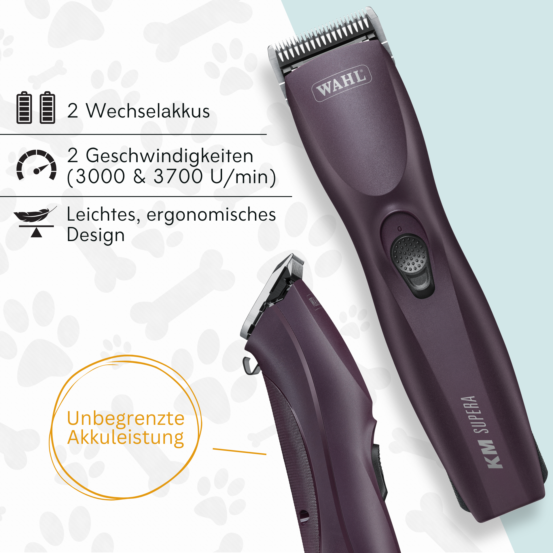 Wahl KM Supera Pet Clipper 2x battery with attachement comb set