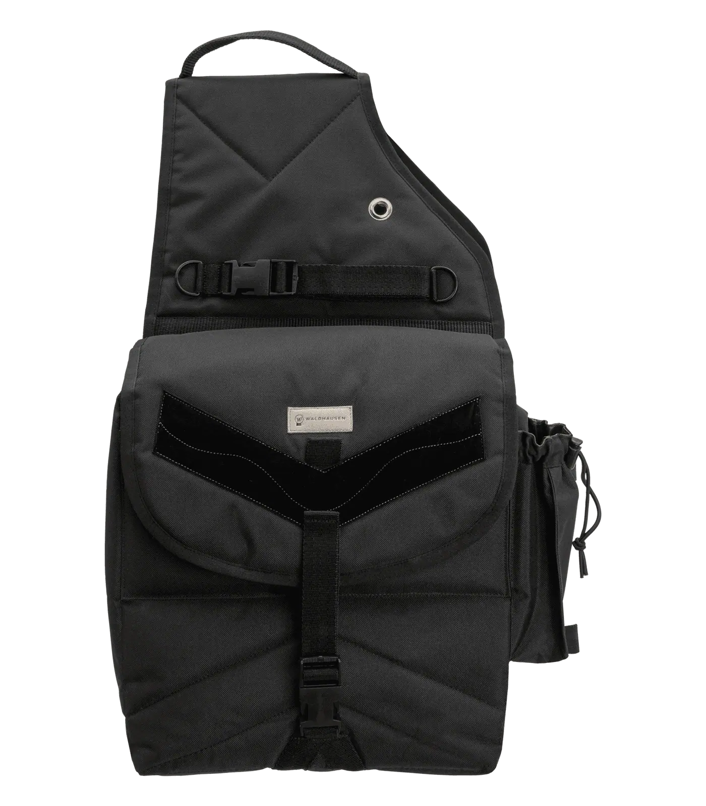 Two spacious bag offer plenty of space. Incl. 2 bottle holders and a pocket for mobile phones. Additional straps to attach rugs and jackets. Made of high quality, water repellent nylon material.
