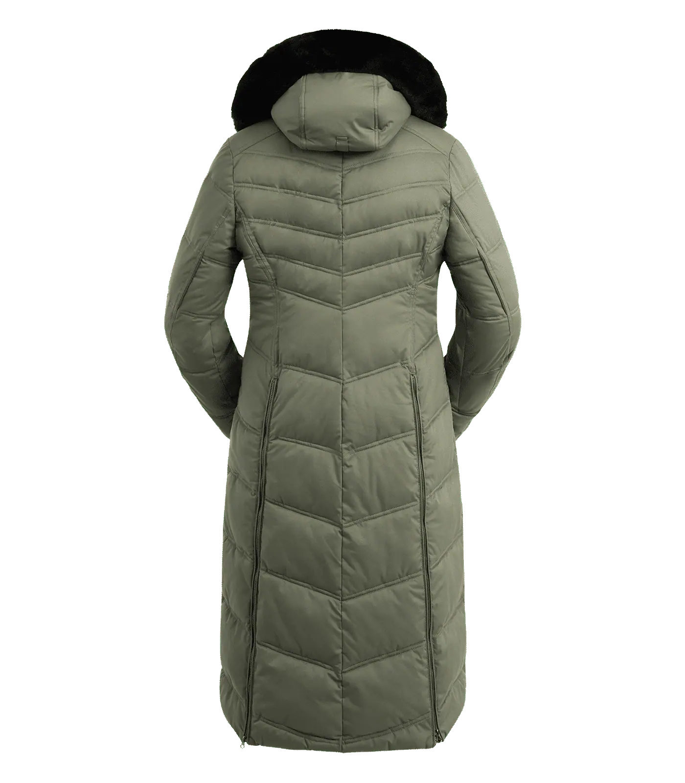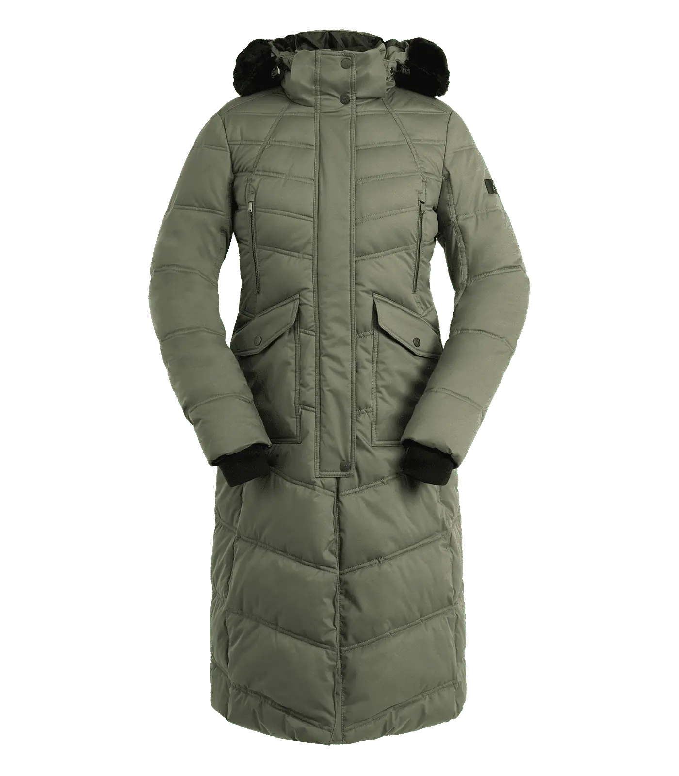 Long, quilted coat with downtype filling, ideal for cold winter days