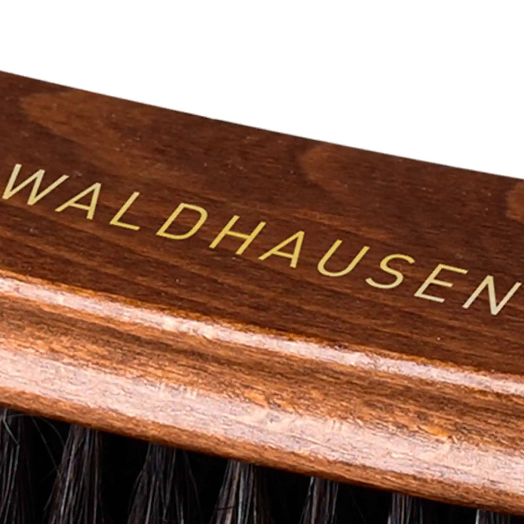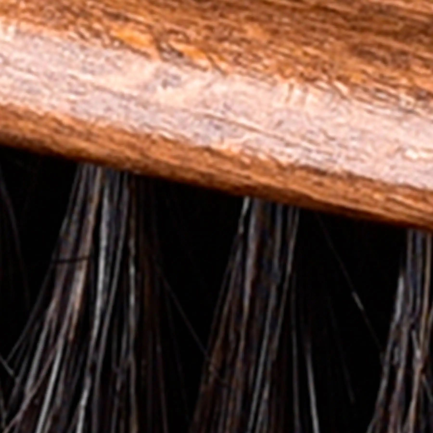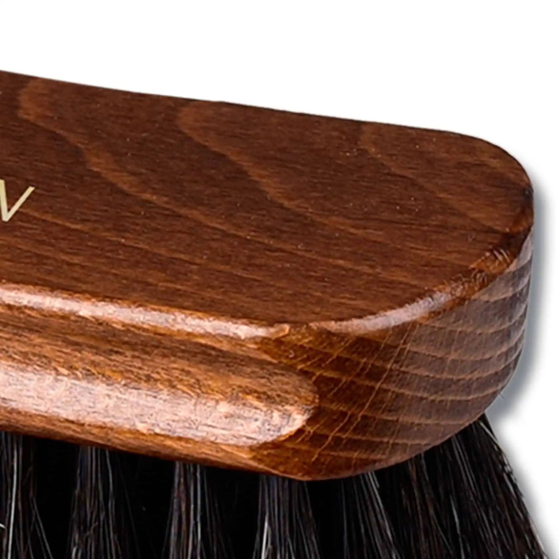 Exclusive shoe polishing brush with high quality 100% horsehair bristles. The curved wooden back with its side grip mouldings ensures perfect handling.