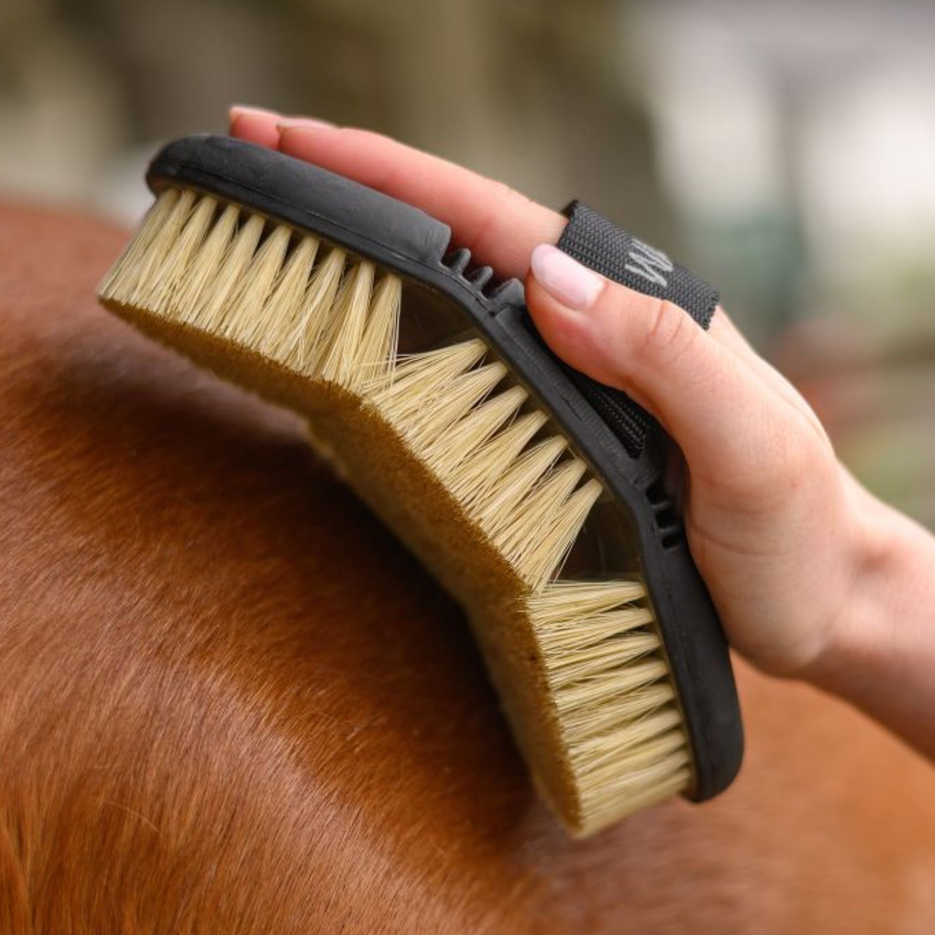 Its sturdy natural bristles make it perfect for removing hard dirt such as mud from all over the horse.