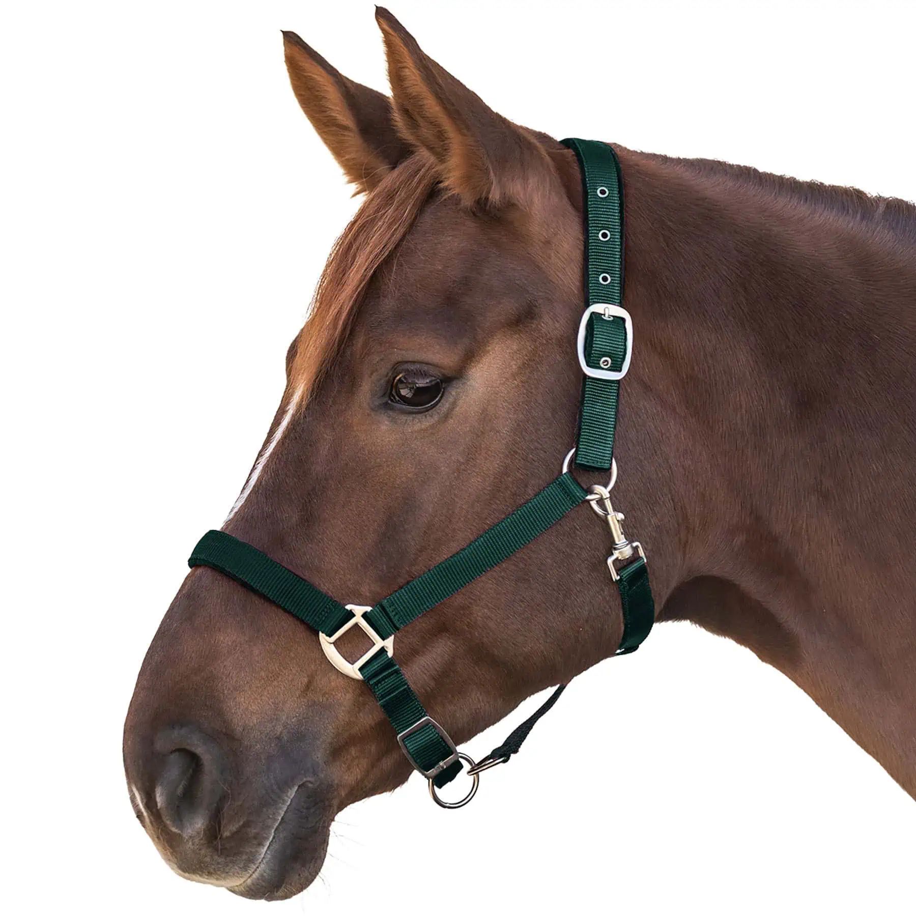 Smooth halter with a softly lined nose- and poll strap. Multi adjustable poll- and curb strap. Solid, dull coloured fittings.