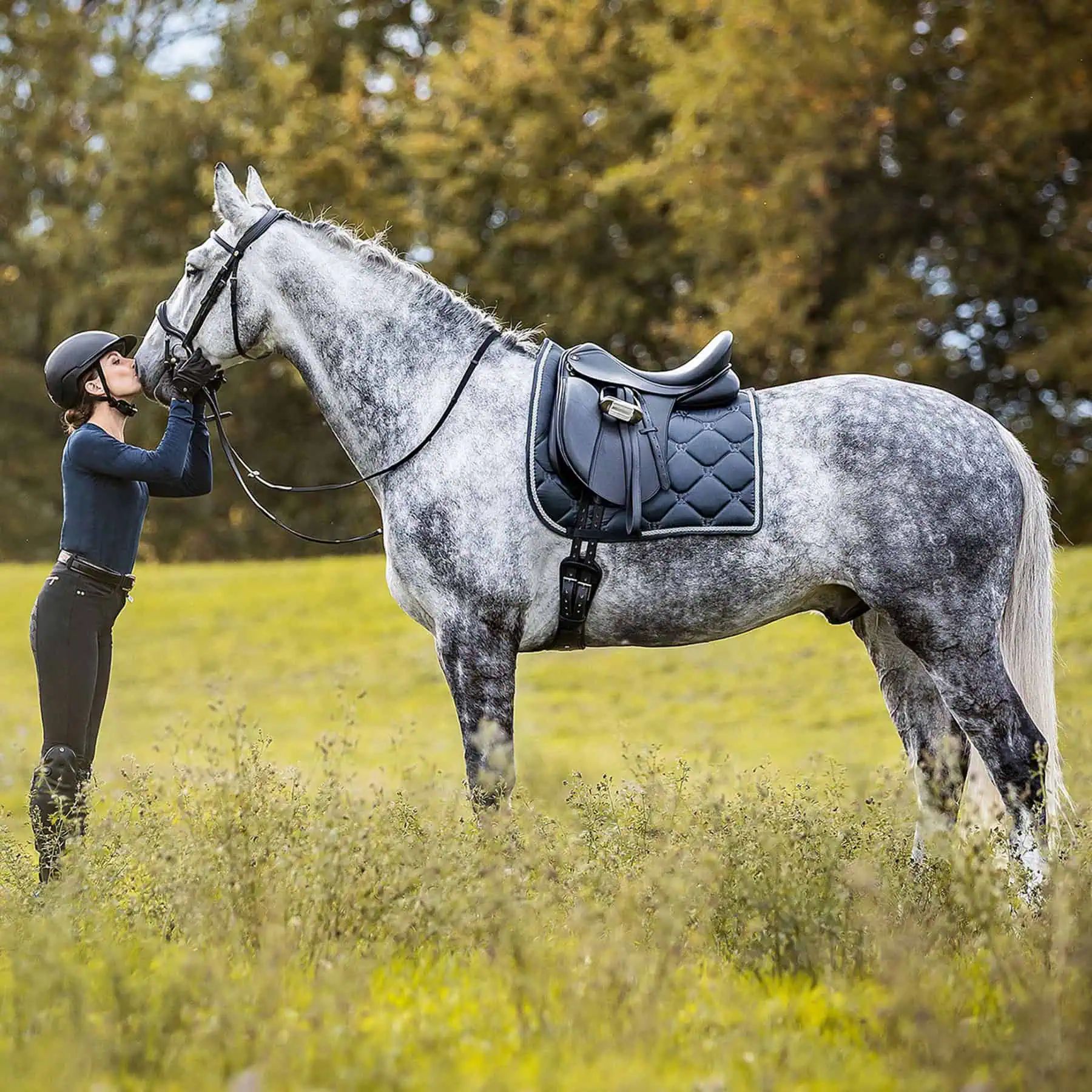 This saddle consists of high quality full-grain leather and offers a very soft, comfortable and grippy seat. In addition it provides an elastic synthetic tree, an exchangeable/ replaceable gullet and adjustable knee blocks - simply a high quality saddle for the demanding rider.