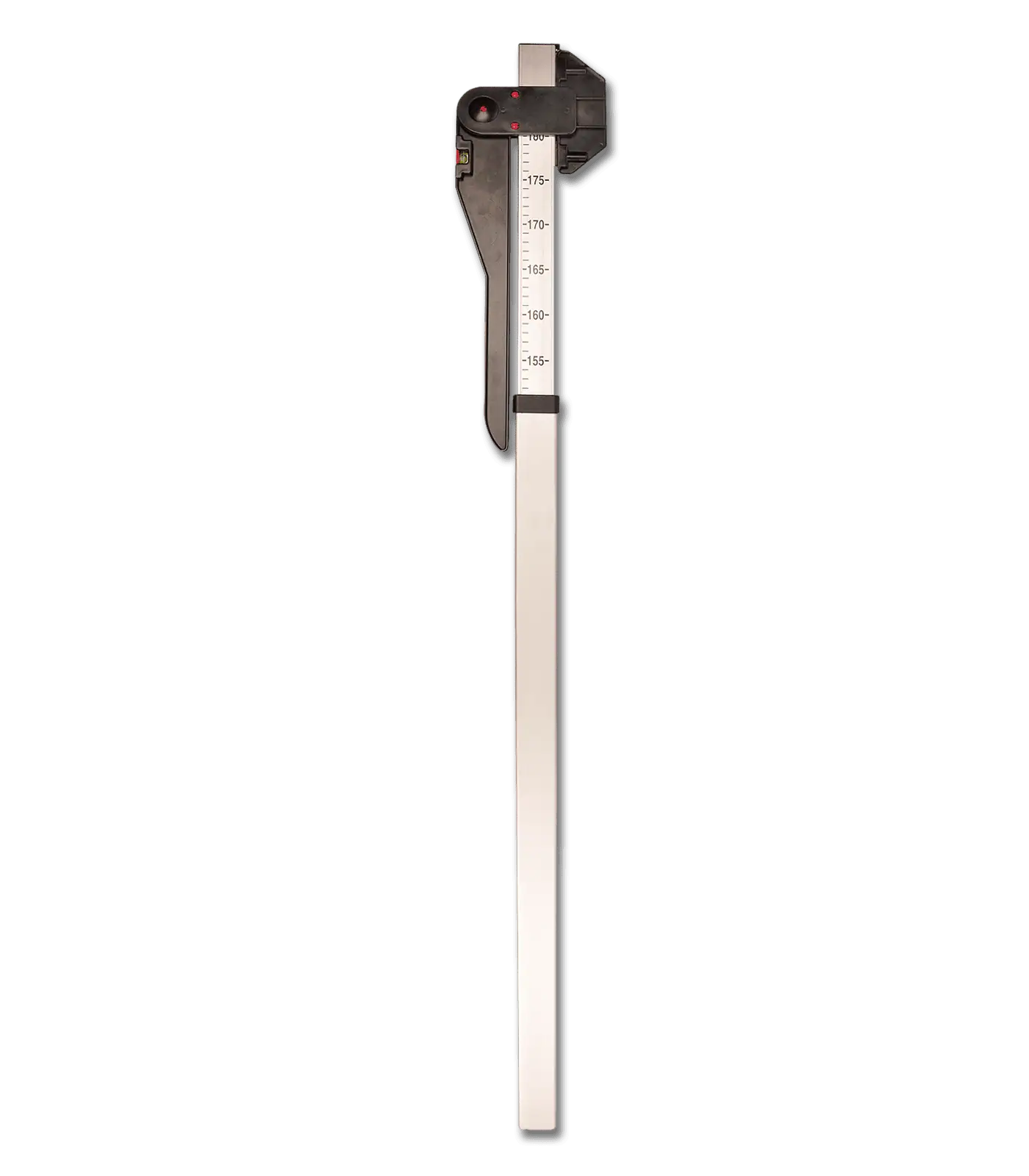 Solid floor measure, made of aluminium. Measuring range from 100-190 cm. Easy handling, integrated water level.