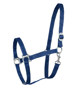 Plain, soft halter with gleaming fittings and a freely adjustable headpiece.