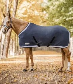 High quality fleece rug, single front fastener with touch tape cover and fillet string. This rug is extremely soft and features perfect moisture-wicking properties. Removable crossover straps.