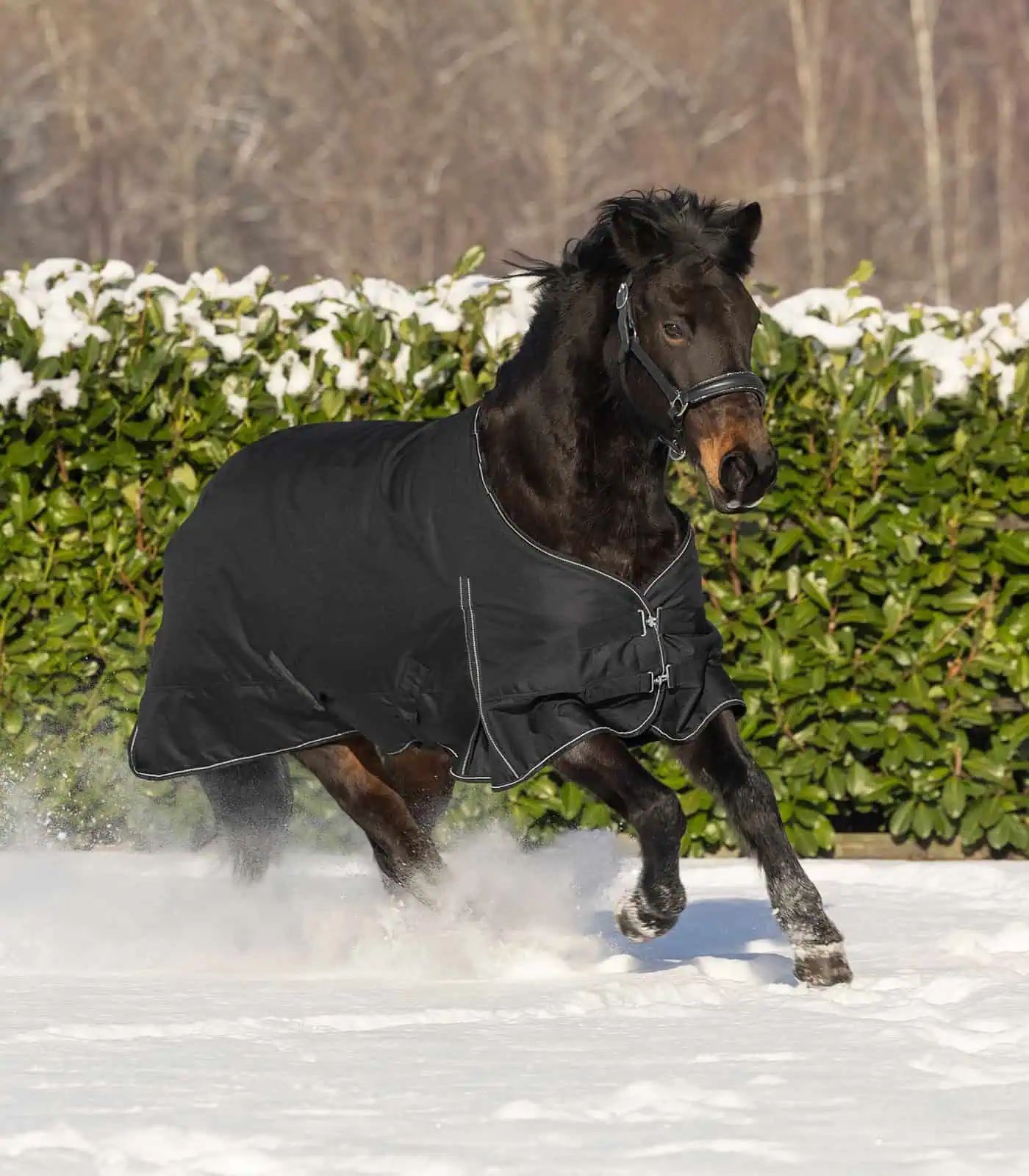 Offer your horse optimum outdoor comfort on cool days with the Waldhausen Nordic turnout rug. The double T-front fasteners ensure a perfect fit. The piping with reflective details increases visibility in poor light conditions. The kick pleat provides great freedom of movement. The 600 denier outer material is durable and will keep your horse warm as well as dry.