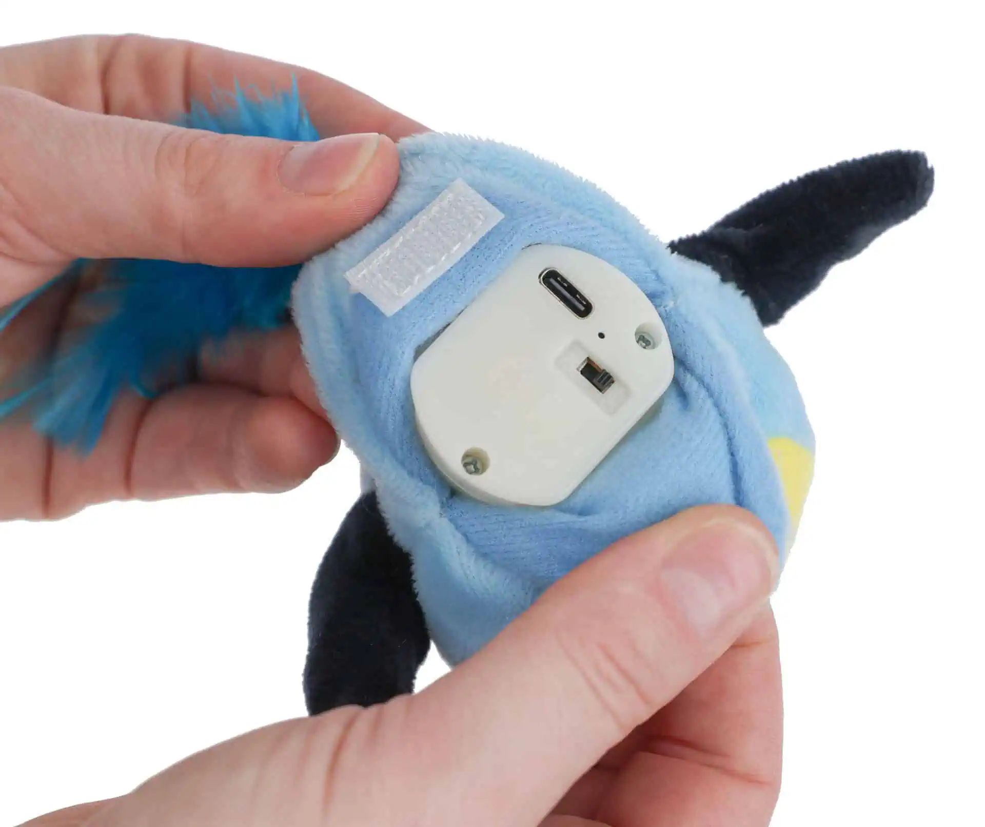The Cat Toy Jumping Bird is an interactive, battery-operated marvel that stimulates your cat's curiosity and playfulness in a fun way. With its realistic chirping sound and fluttering wings, it perfectly mimics a real bird, encouraging your cat to play and hunt. The soft plush cover and real feathers make playing especially pleasant and safe for your feline friend.