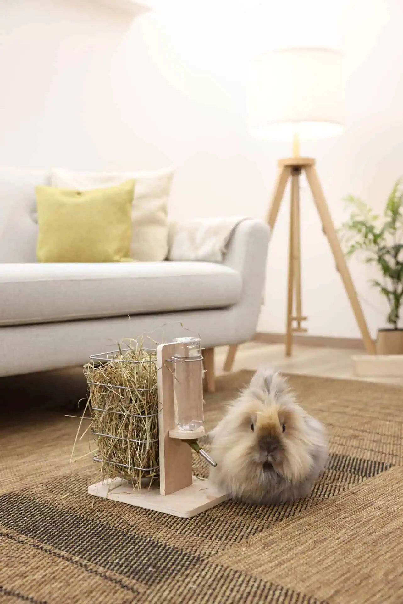 - Hay rack (21x13x13 cm) and water bottle (250 ml)