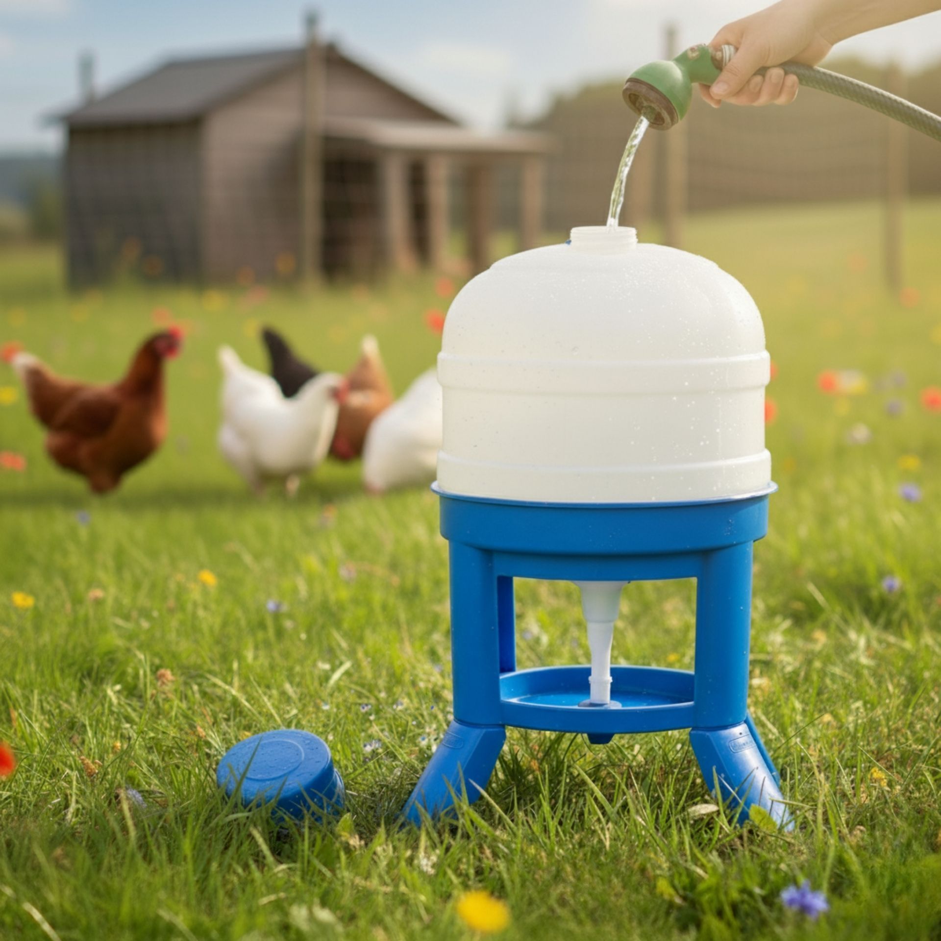 The chicken drinker made from high-quality plastic can be easily cleaned with warm water and a mild detergent. Be sure to clean regularly to maintain hygiene.