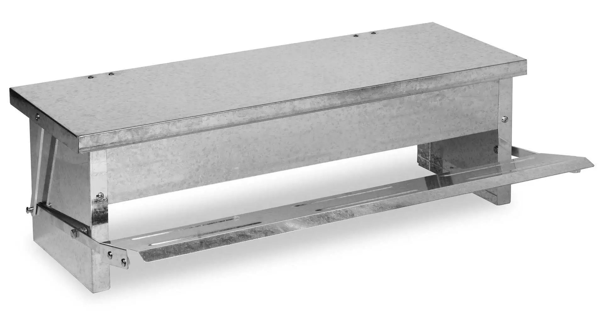 The Agrarzone Treadle Feeding Trough is a revolutionary tool designed to protect your chickens' feed from unwanted guests, ensuring that only your feathered friends get access to their food. As soon as a chicken steps on the treadle, the lid opens, providing a secure and efficient way to keep your feed safe from pests like mice and birds. This feeder is crafted from high-quality, durable metal that can withstand harsh weather conditions, making it a reliable addition to any poultry keeper's setup.